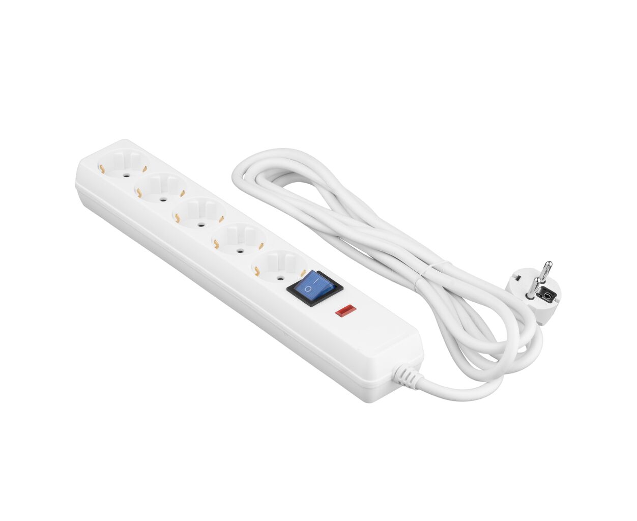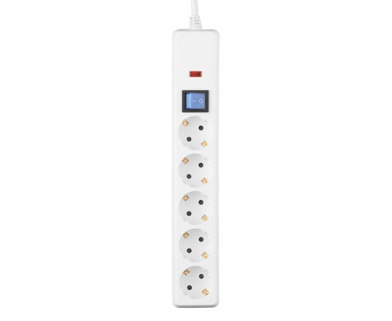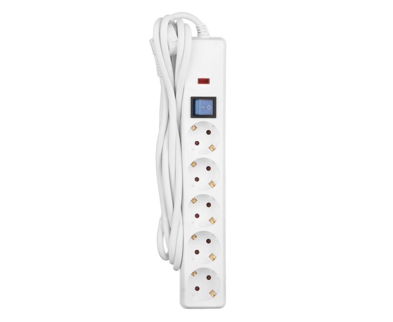 Количество розеток - 5, Длина кабеля - 3 м, контакт заземления, с общим выключателем, Защита - от перепадов напряжения, Цвет - белый