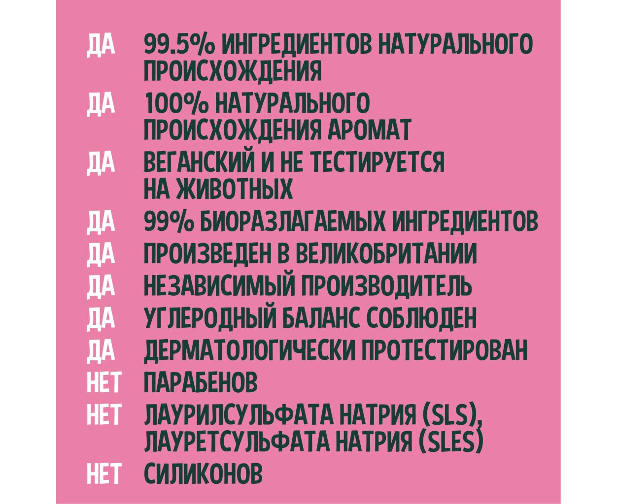 Шампунь состоит на 99,5% из ингредиентов натурального происхождения и не содержит силиконов и вредных сульфатов, таких как лаурилсульфат натрия. Это обеспечивает деликатный уход за вашими волосами, делая их здоровыми и ухоженными без агрессивных химических веществ. Благодаря тропическому аромату шампунь переносит вас в мир экзотических ощущений, поднимая настроение и добавляя чувство свежести.