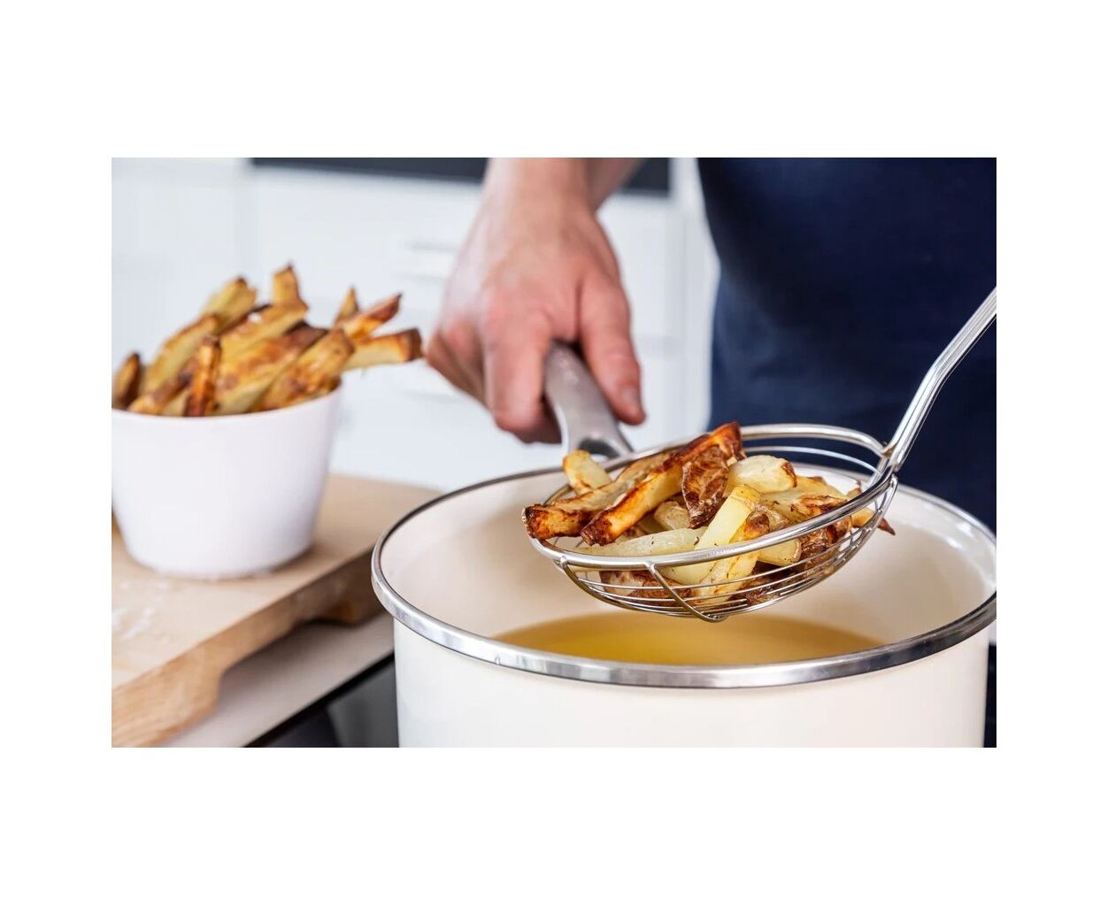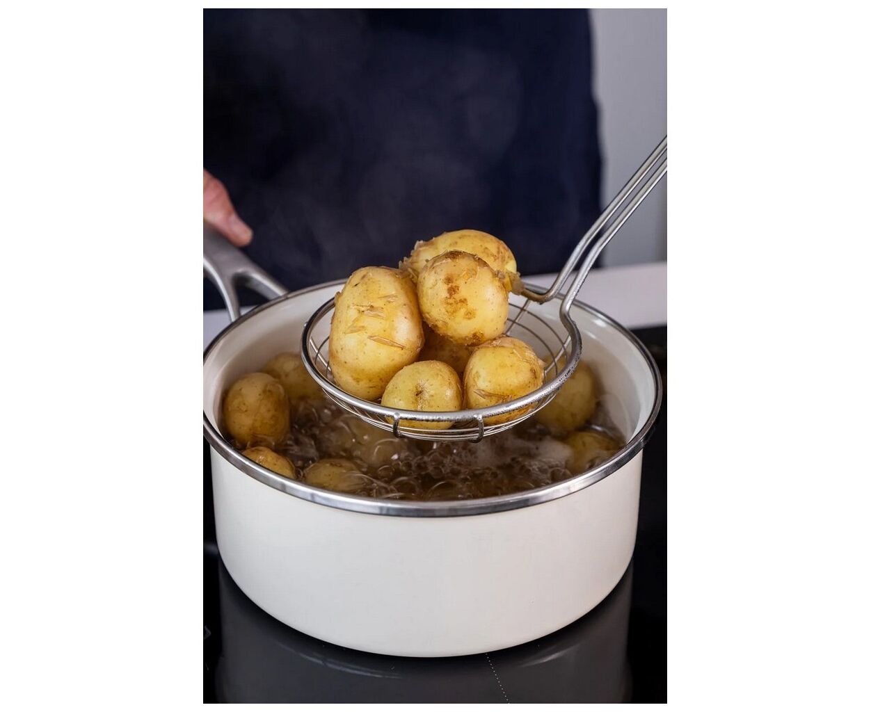 Эта универсальная шумовка KitchenAid легко зачерпывает пельмени. Чрезвычайно широкая корзина из нержавеющей стали позволяет жидкости быстро стекать, что делает ее отличным инструментом для жарки во фритюре. Головка сита изготовлена из крепкой, устойчивой к ржавчине нержавеющей стали. Мягкая ручка с рельефным логотипом, которую можно мыть в посудомоечной машине для легкой очистки.