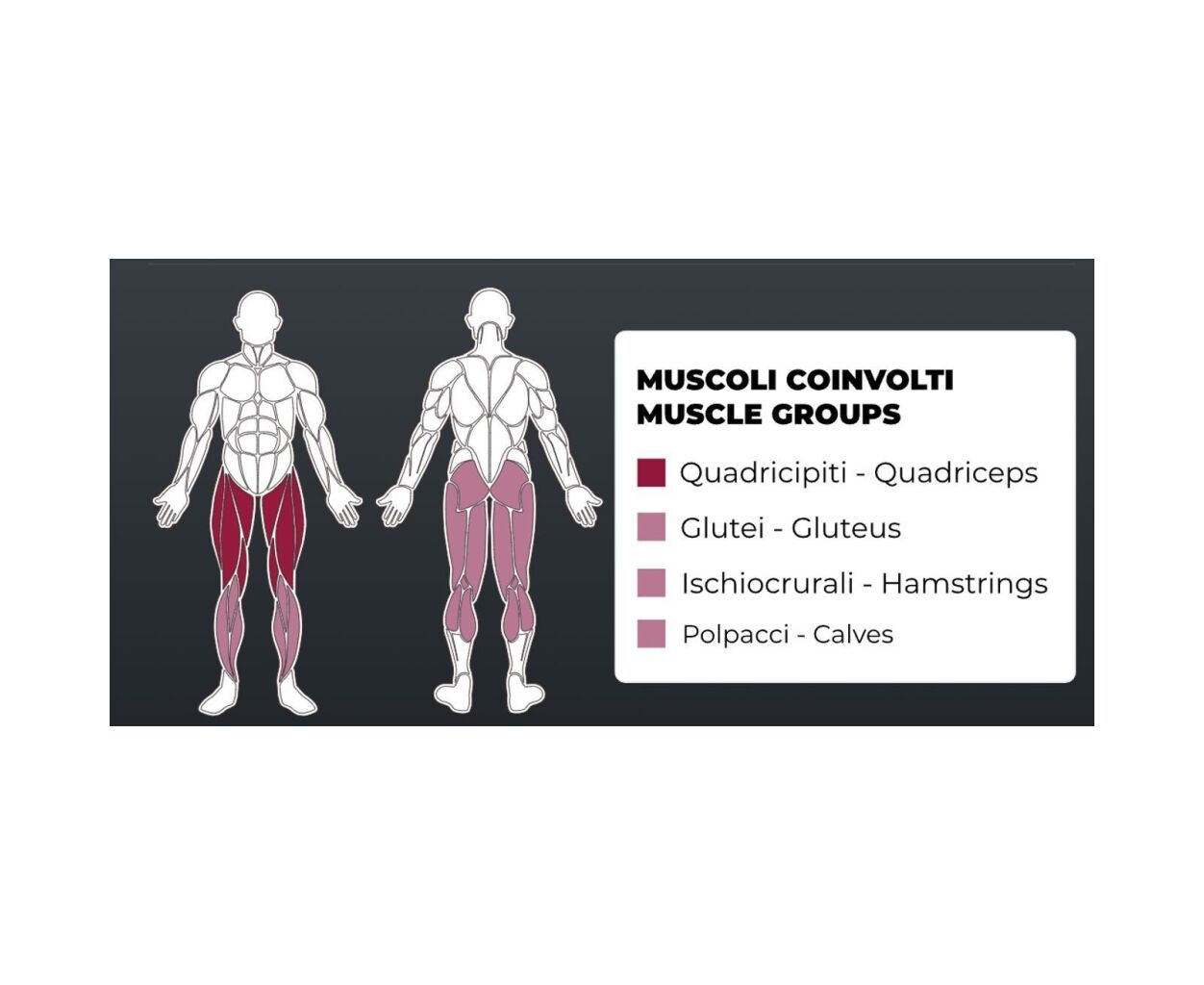 Мышечные группы, которые привлекаются во время тренировок на платформе для жима ногами Toorx WBX 4000:
