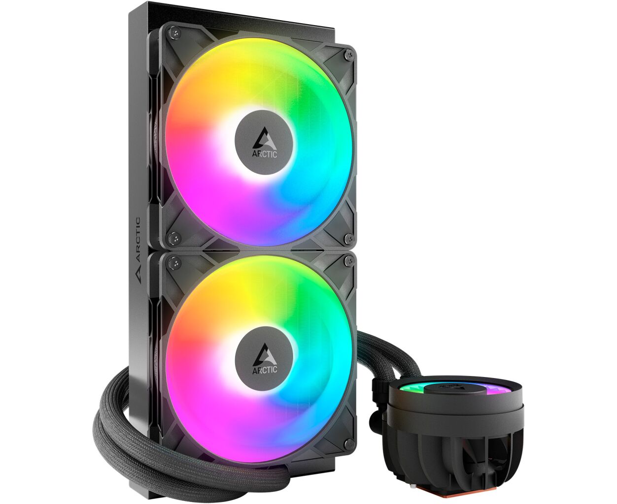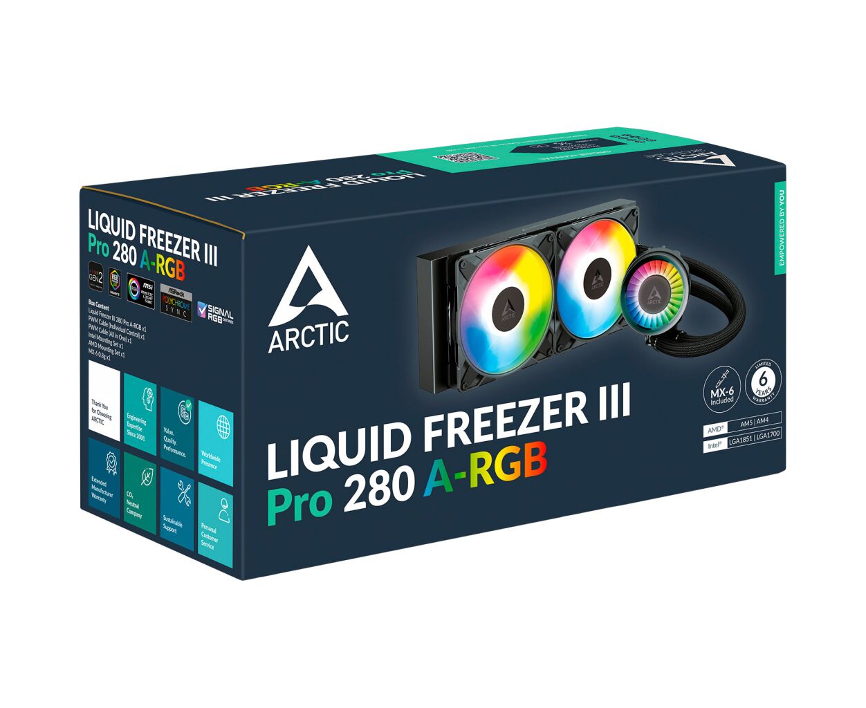 ARCTIC Liquid Freezer III Pro 280 A-RGB — жидкостная охлаждающая система, сочетающая высокую эффективность с эстетической ARGB-подсветкой. Благодаря мощному водоблоку, оптимизированному радиатору и современным вентиляторам эта модель создана для пользователей, желающих получить не только надежное охлаждение, но и стильный акцент в своем ПК.
