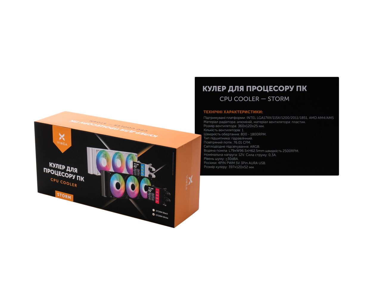 Характеристики Система жидкостного охлаждения Vinga Storm White