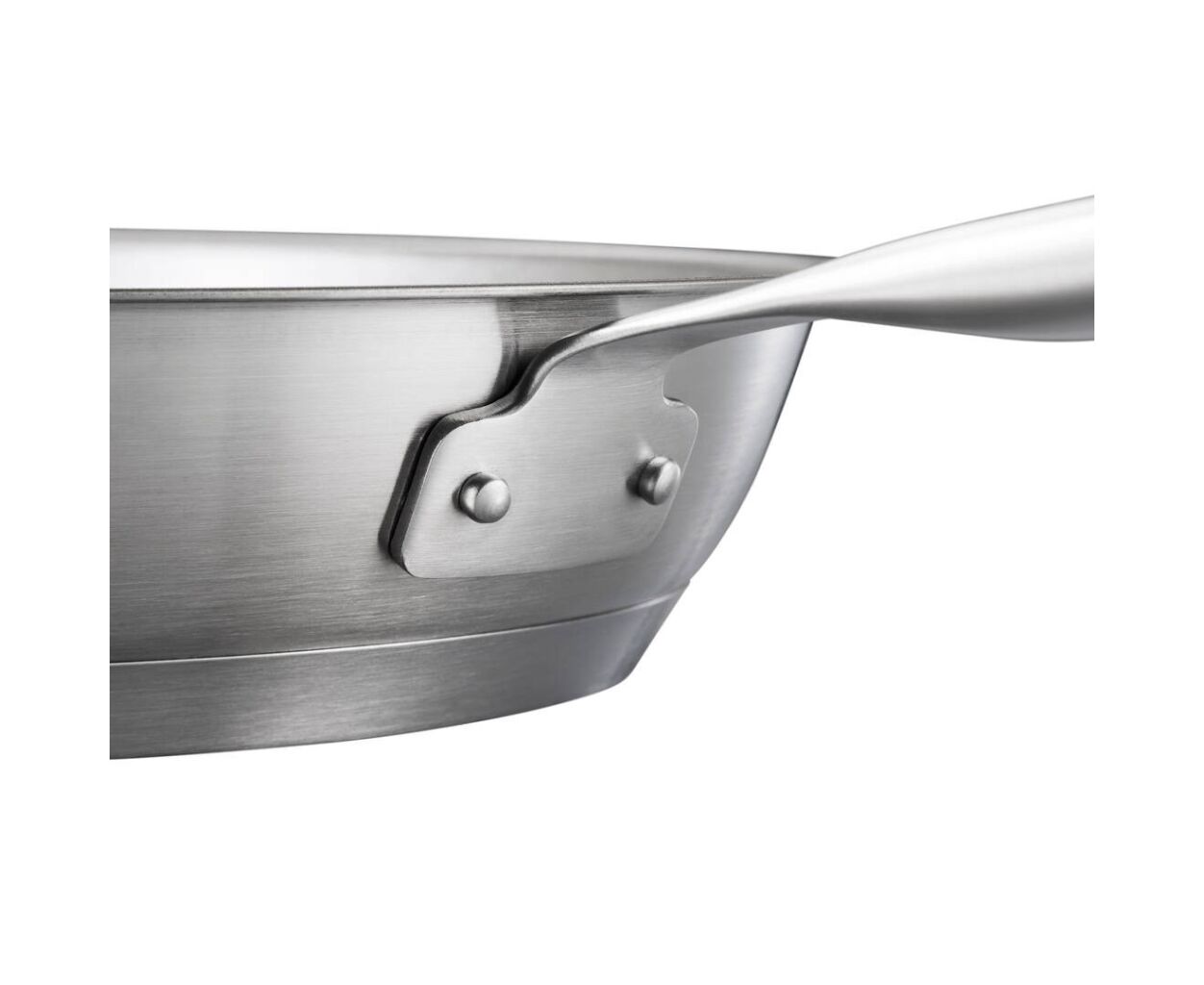 Сковорода оснащена трехслойным дном, которое равномерно и быстро нагревается.