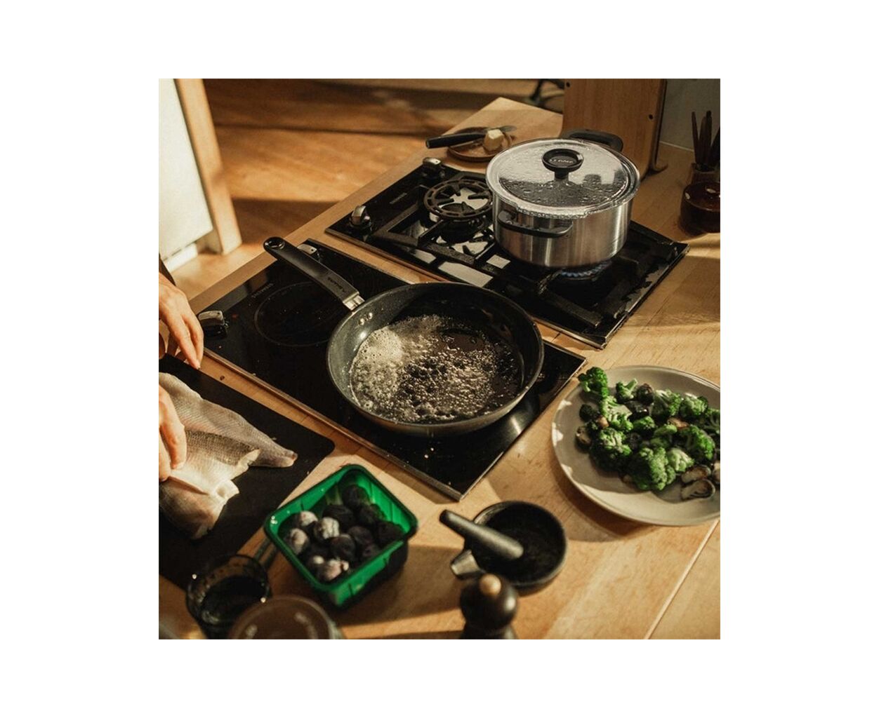 Сковорода Fiskars Functional Form идеально подходит для семей, которые любят готовить множество вкусных ежедневных блюд, таких как яйца и овощи, а также рыбу и жаркое. Сковорода размером 28 см изготовлена на 90% из прочной переработанной нержавеющей стали и может использоваться на всех плитах, включая индукционные.