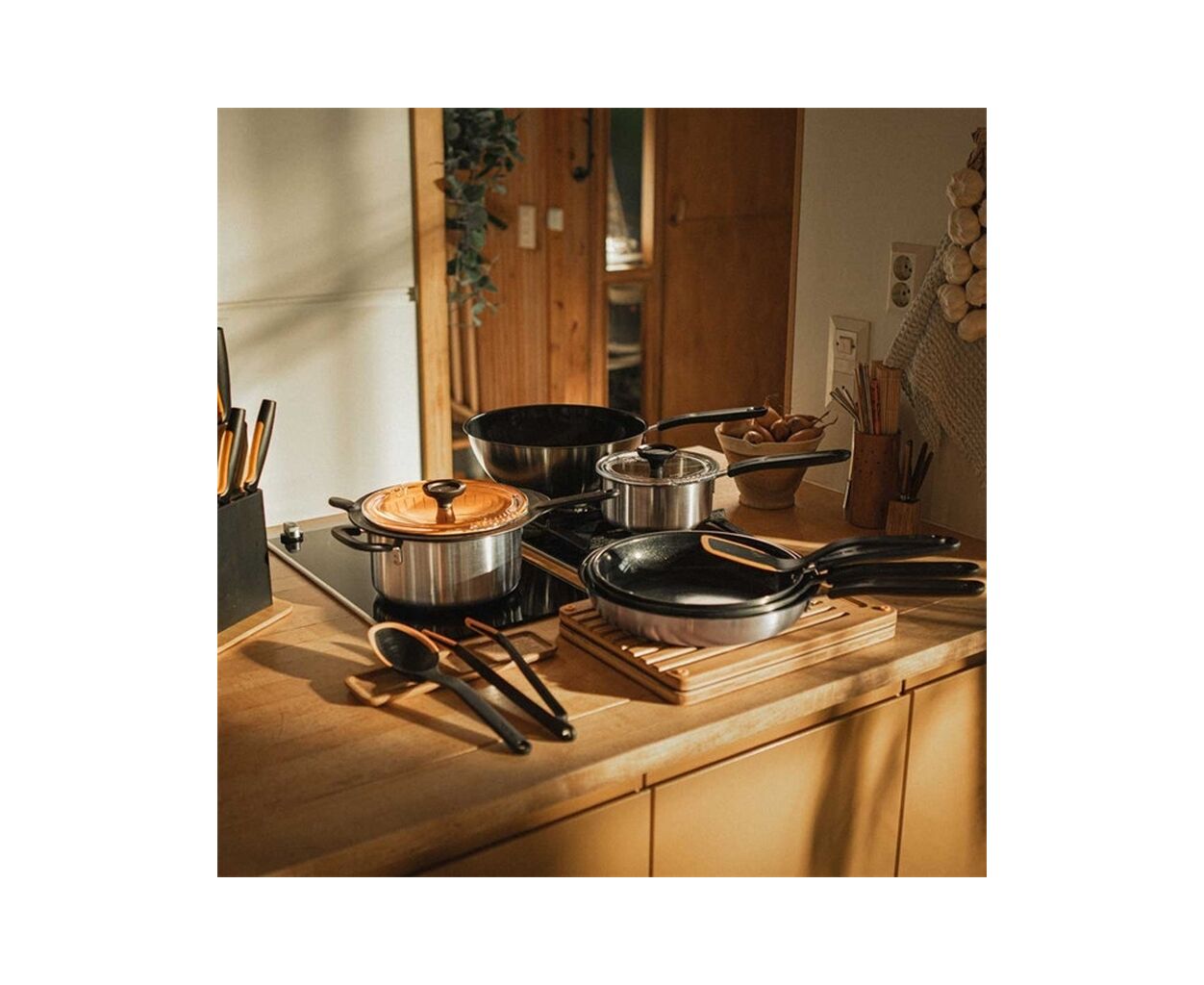 Сковороды Functional Form оснащены трехслойным дном, что гарантирует оптимальный нагрев блюд без перегрева удобной ручки даже во время подрумянивания.