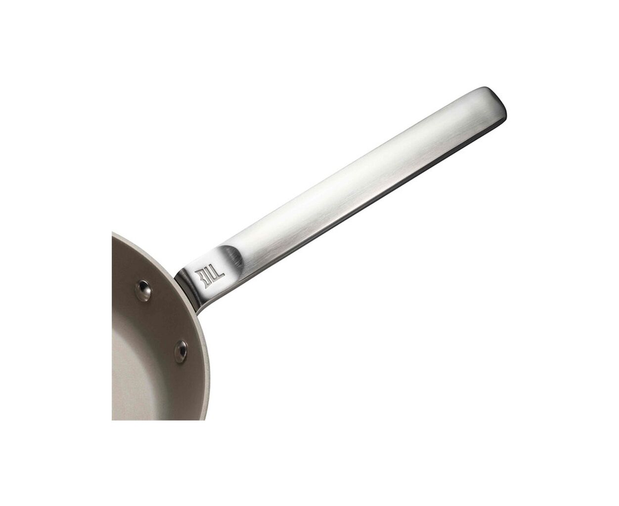 Характерная ручка из нержавеющей стали сводит к минимуму теплопередачу и упрощает использование. Максимальная температура жарки и запекания 270°С.