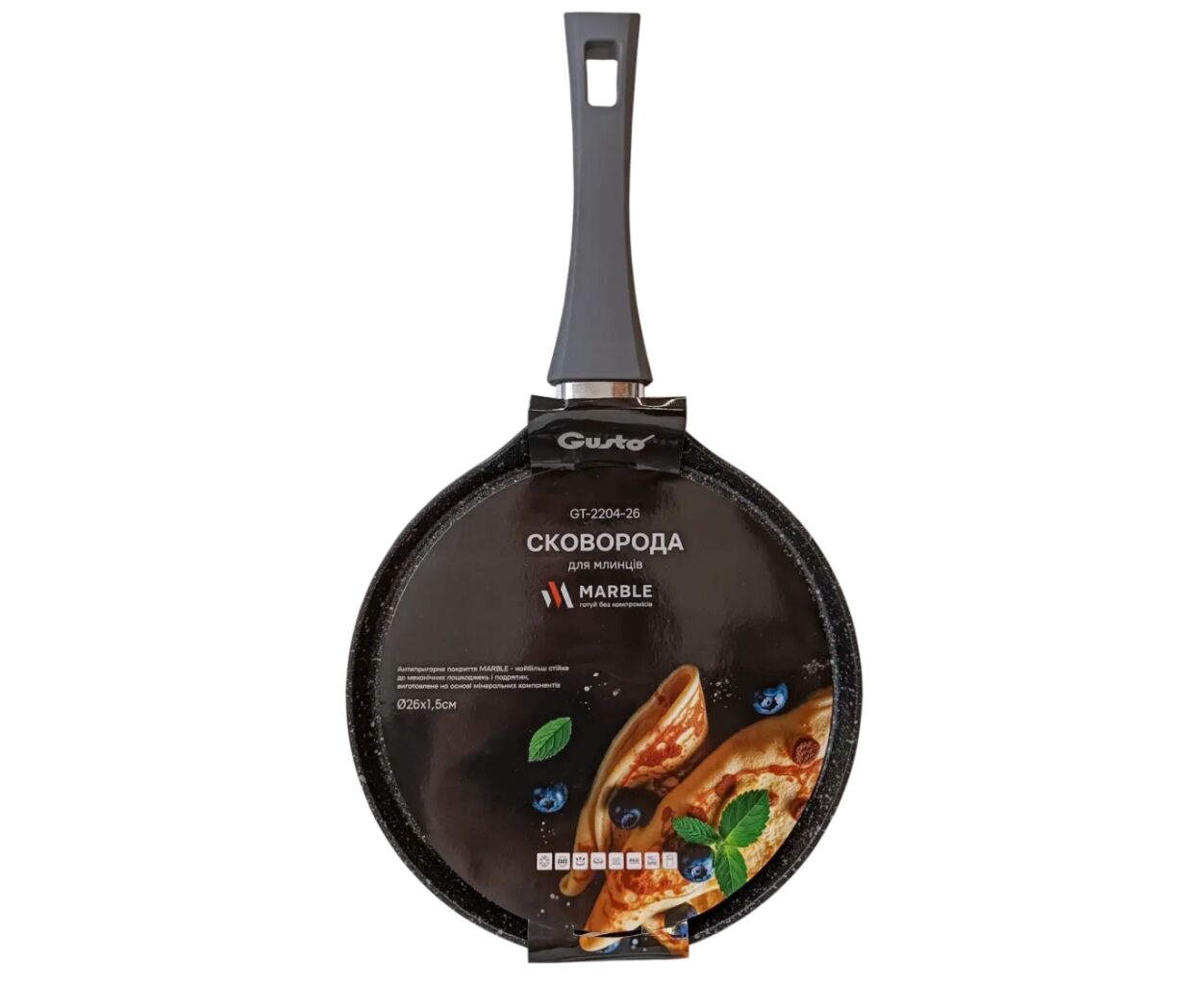 Описание Сковорода Gusto Marble 260x15 мм для блинов GT-2204-26 (79096)