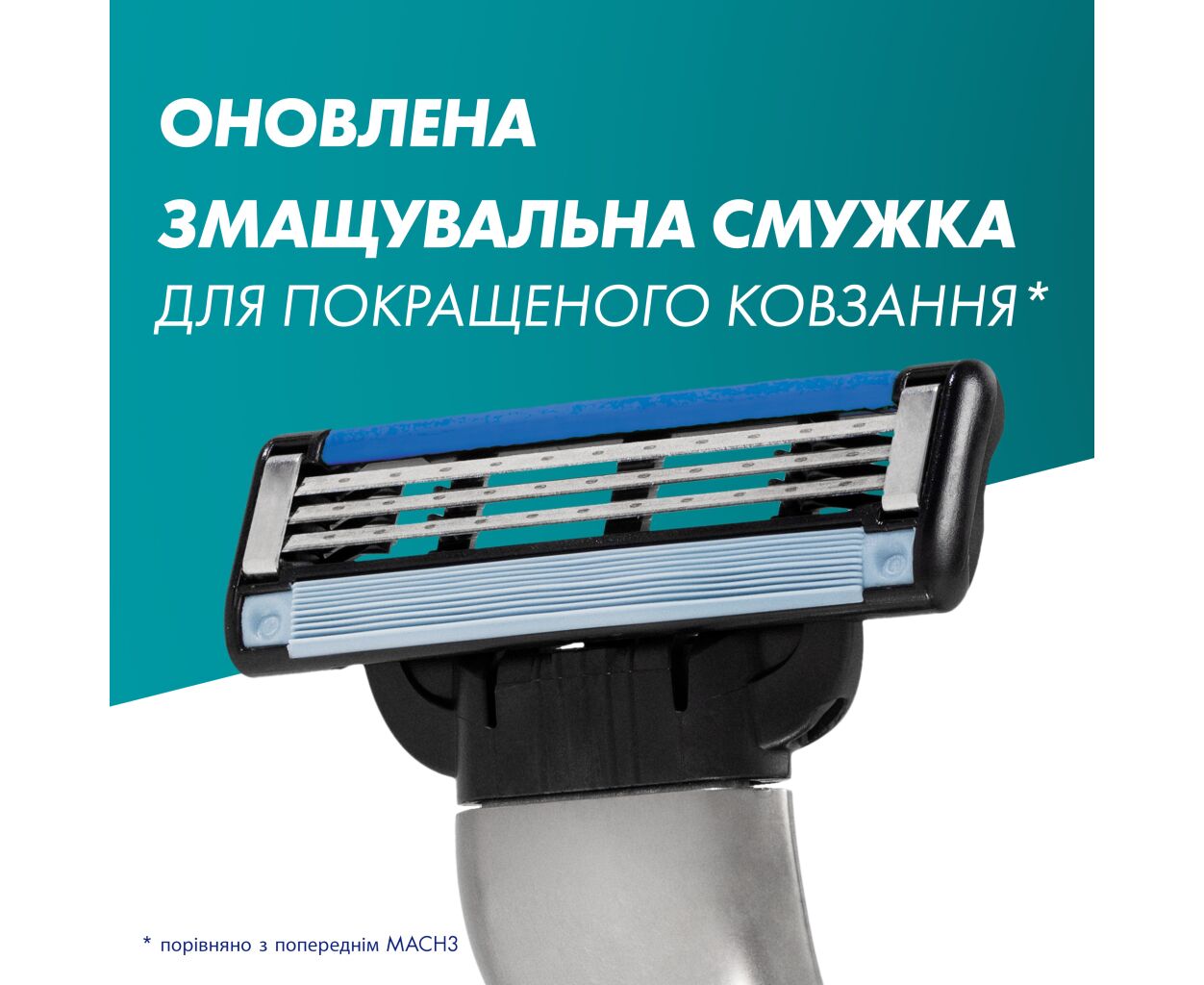 Сменные кассеты для мужской бритвы Gillette Mach 3 оснащены лезвиями прочнее, чем сталь, которые дольше сохраняют остроту (по сравнению с Sensor3). Более острые режущие лезвия (первые 2 лезвия по сравнению с Sensor3) рассчитаны на 15 процедур комфортного бритья. Эта бритва Gillette оснащена смазывающей полоской, которая скользит по коже, предотвращая ее покраснение, а защитный микрогребень Skin Guard растягивает кожу и подготавливает волоски к сбриванию. К мужской бритве Mach3 подходят все сменные кассеты Mach3.ᅠ