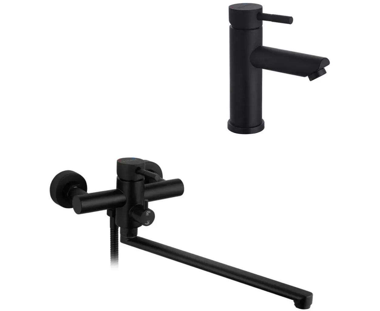 набор смесителей, однорычажный, настенный, врезной, нержавеющая сталь, поворотный, стационарный, Длина излива - 33 см, Подключение - 1/2", Цвет - черный, Германия
