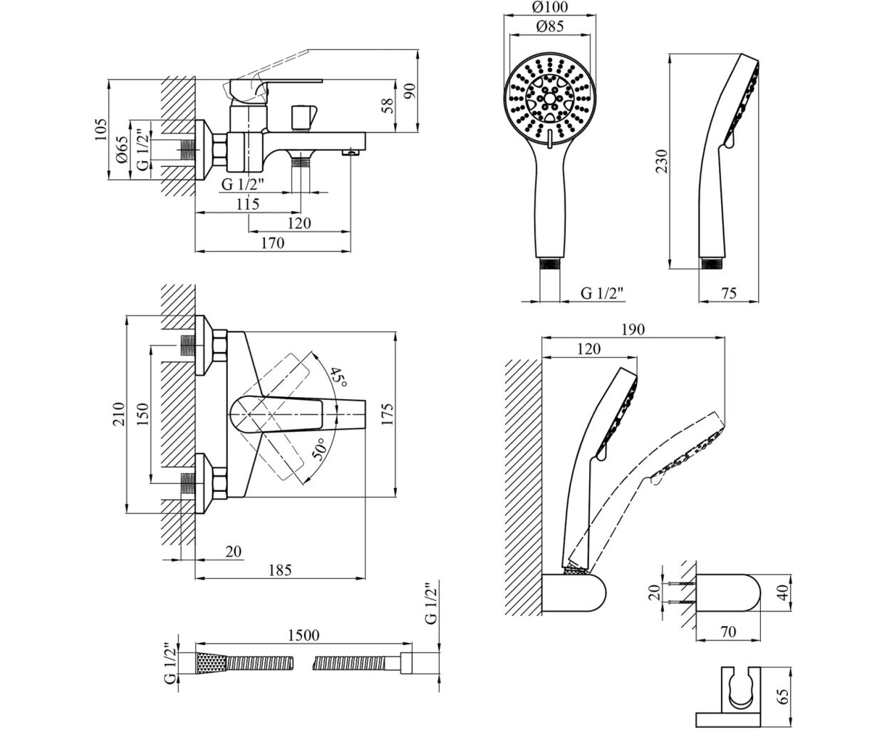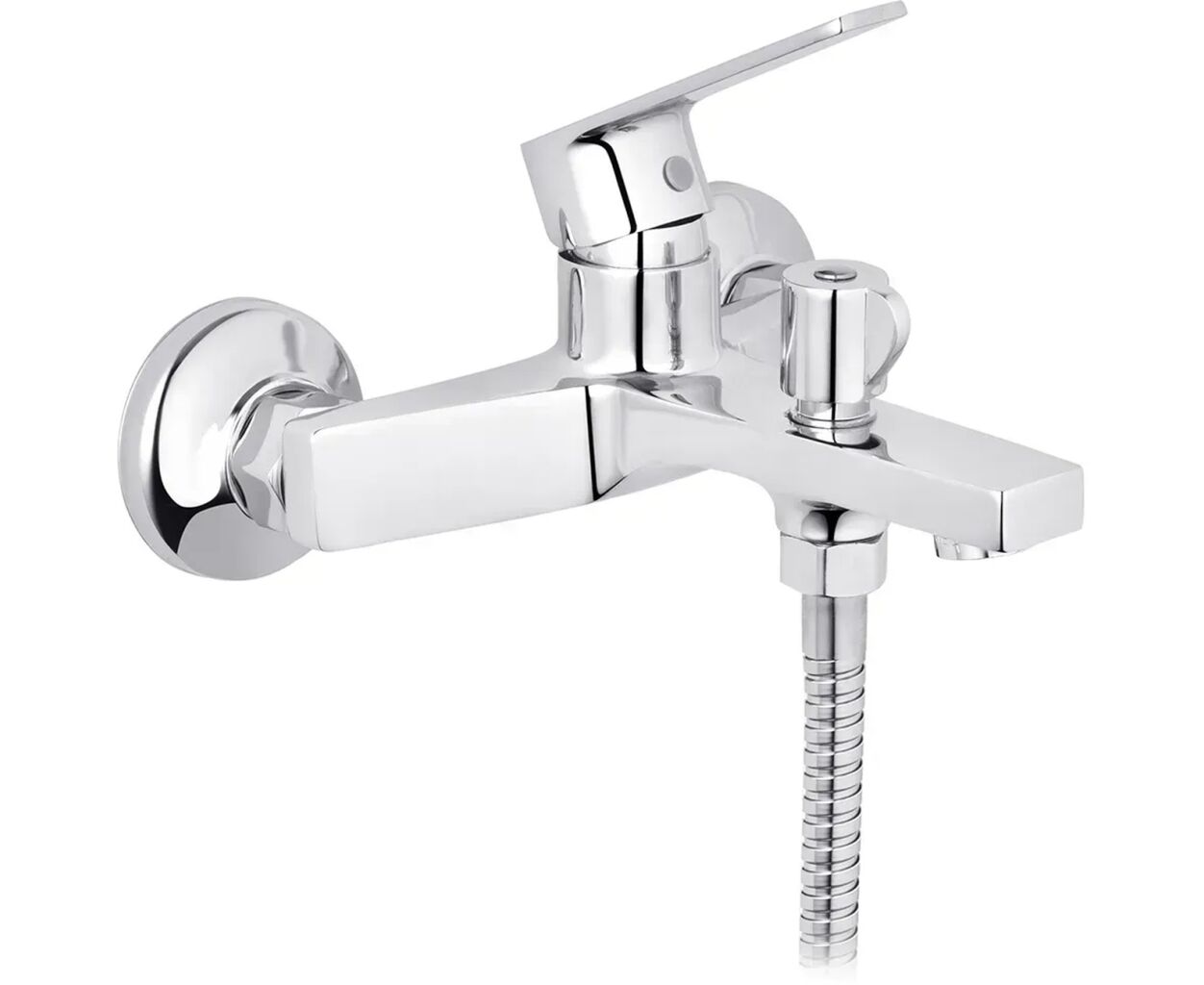 для ванны, однорычажный, настенный, латунь, стационарный, Длина излива - 12 см, Подключение - 1/2", Цвет - серебристый, Германия