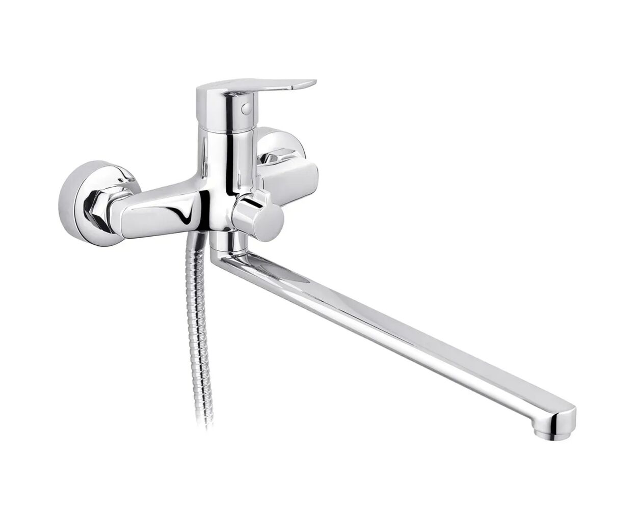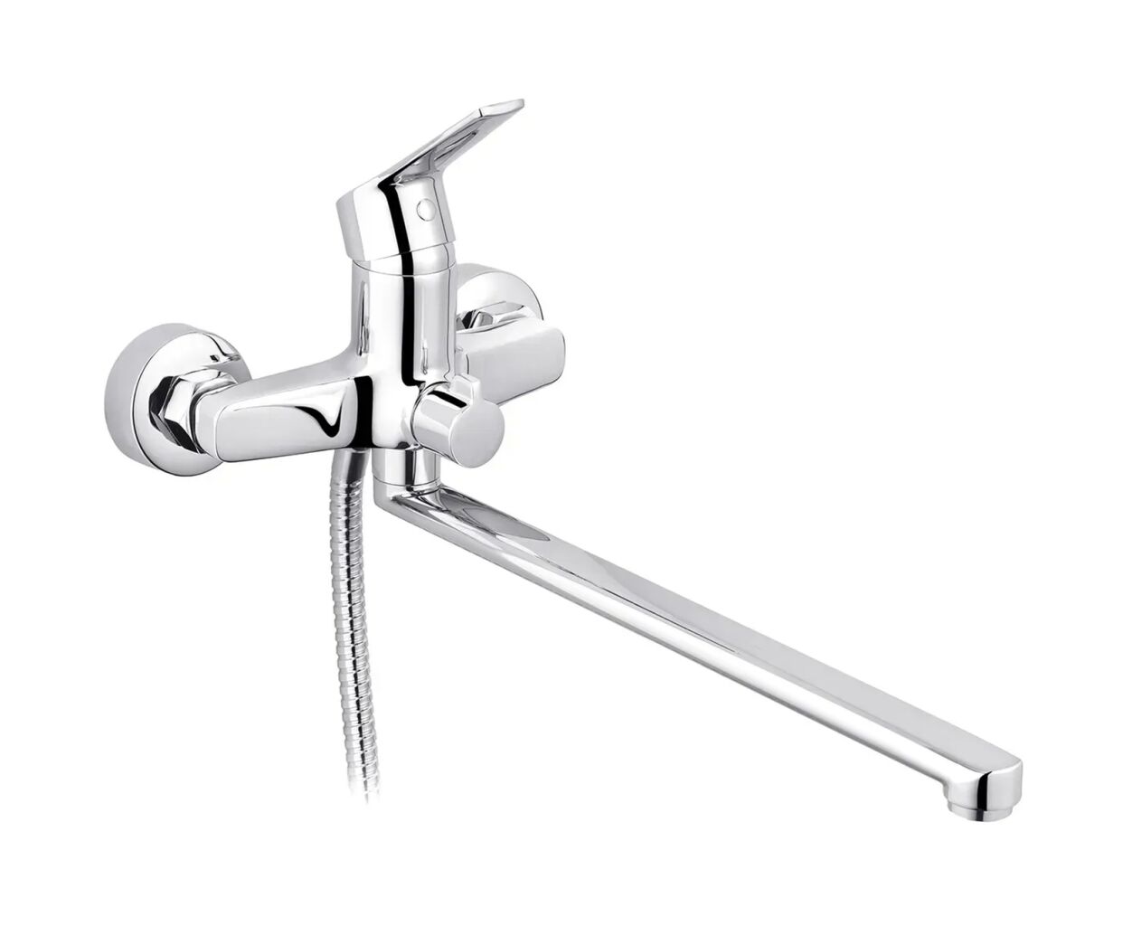 для ванны, однорычажный, настенный, латунь, поворотный, Длина излива - 32.5 см, Подключение - 1/2", Цвет - серебристый, Германия