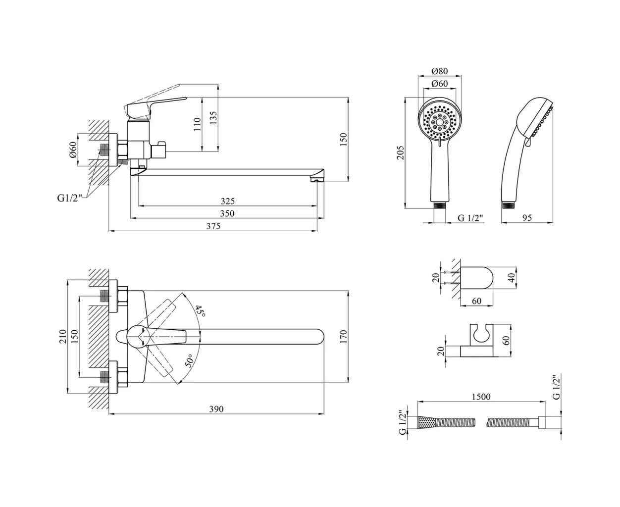 отдельно стоящий ручной душ