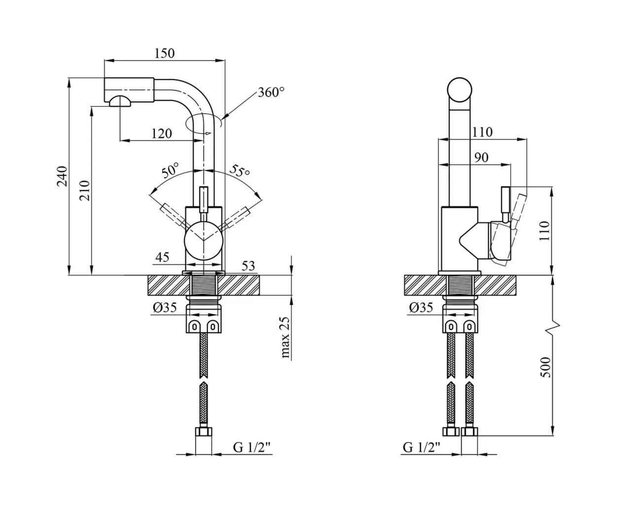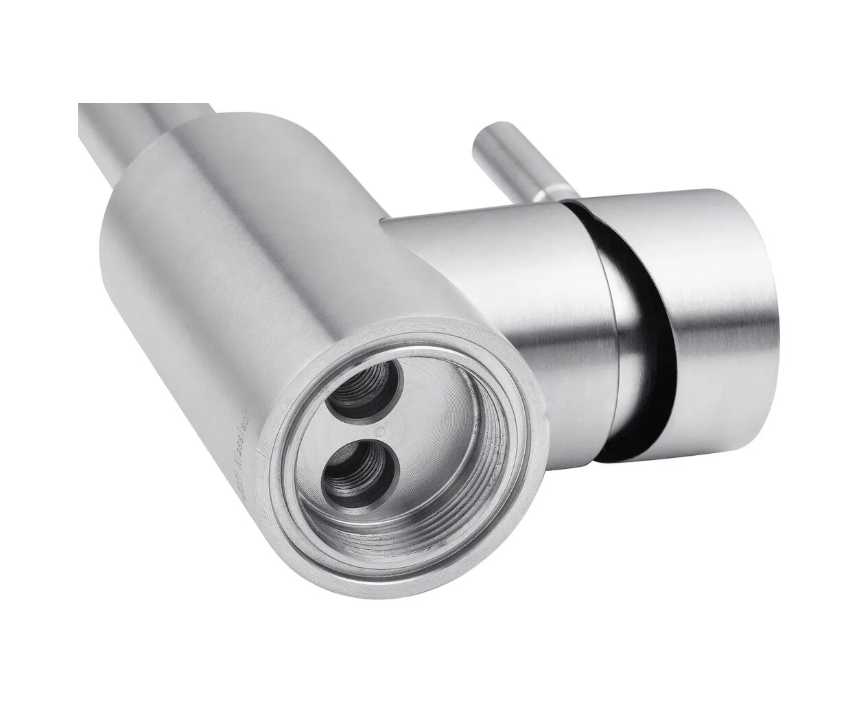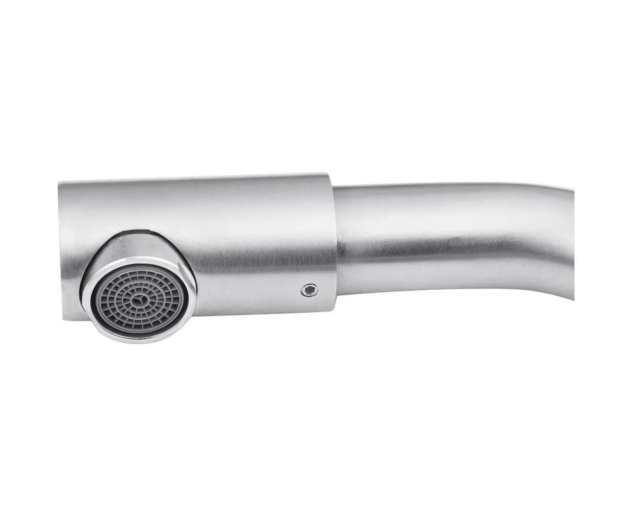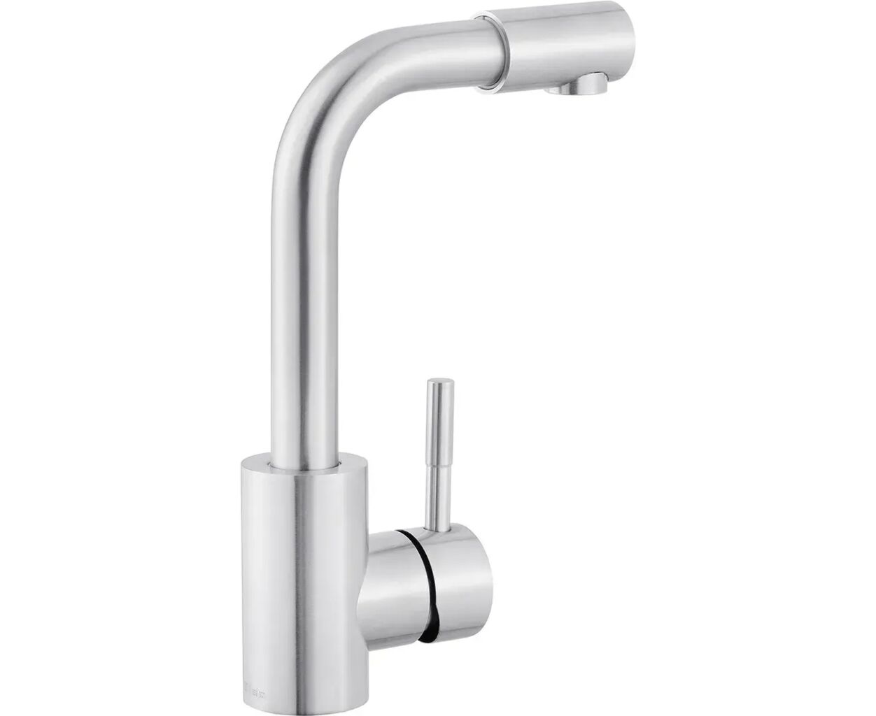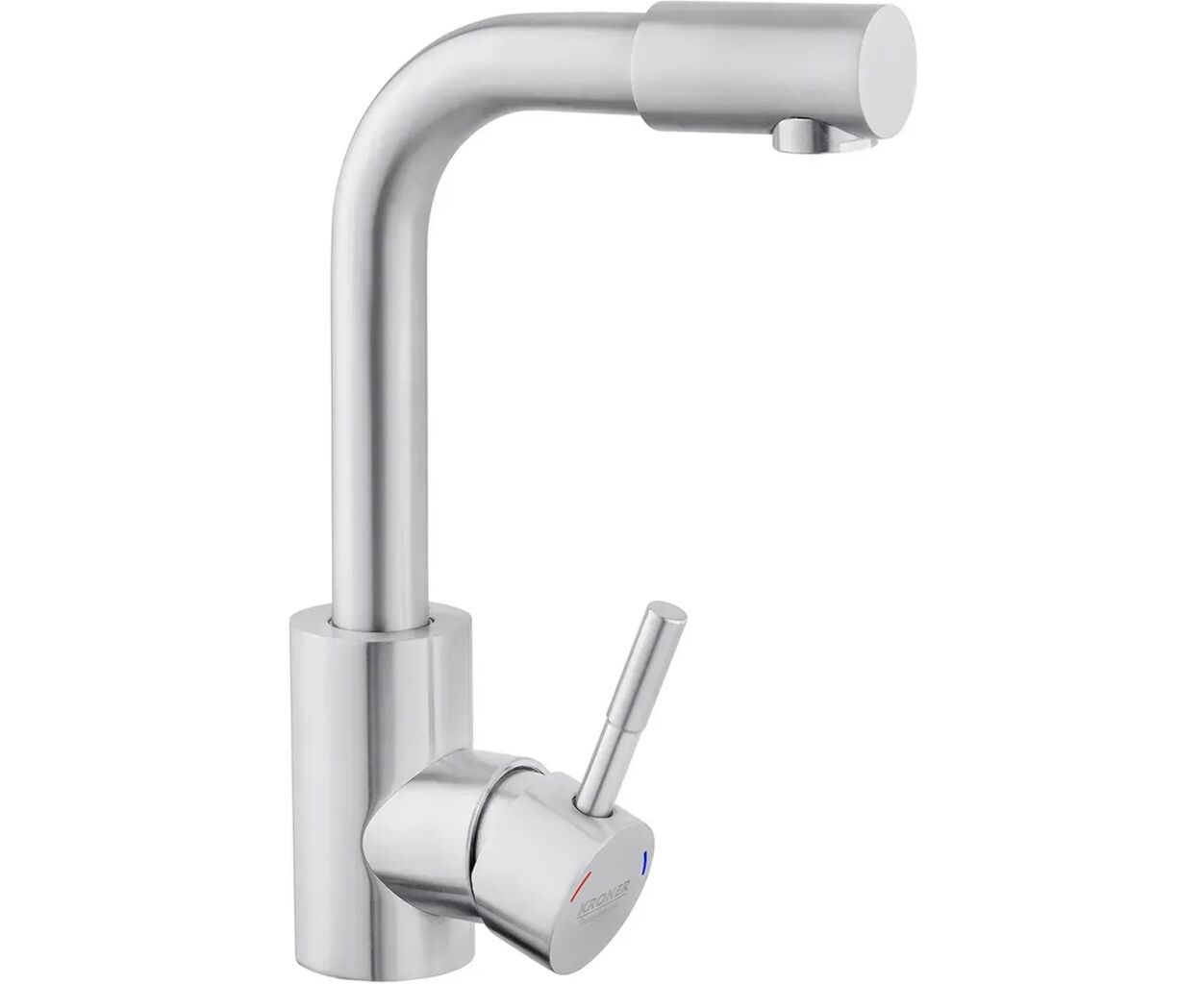 для раковины, однорычажный, врезной, нержавеющая сталь, поворотный, Длина излива - 12 см, Подключение - 1/2", Цвет - нержавеющая сталь, Германия