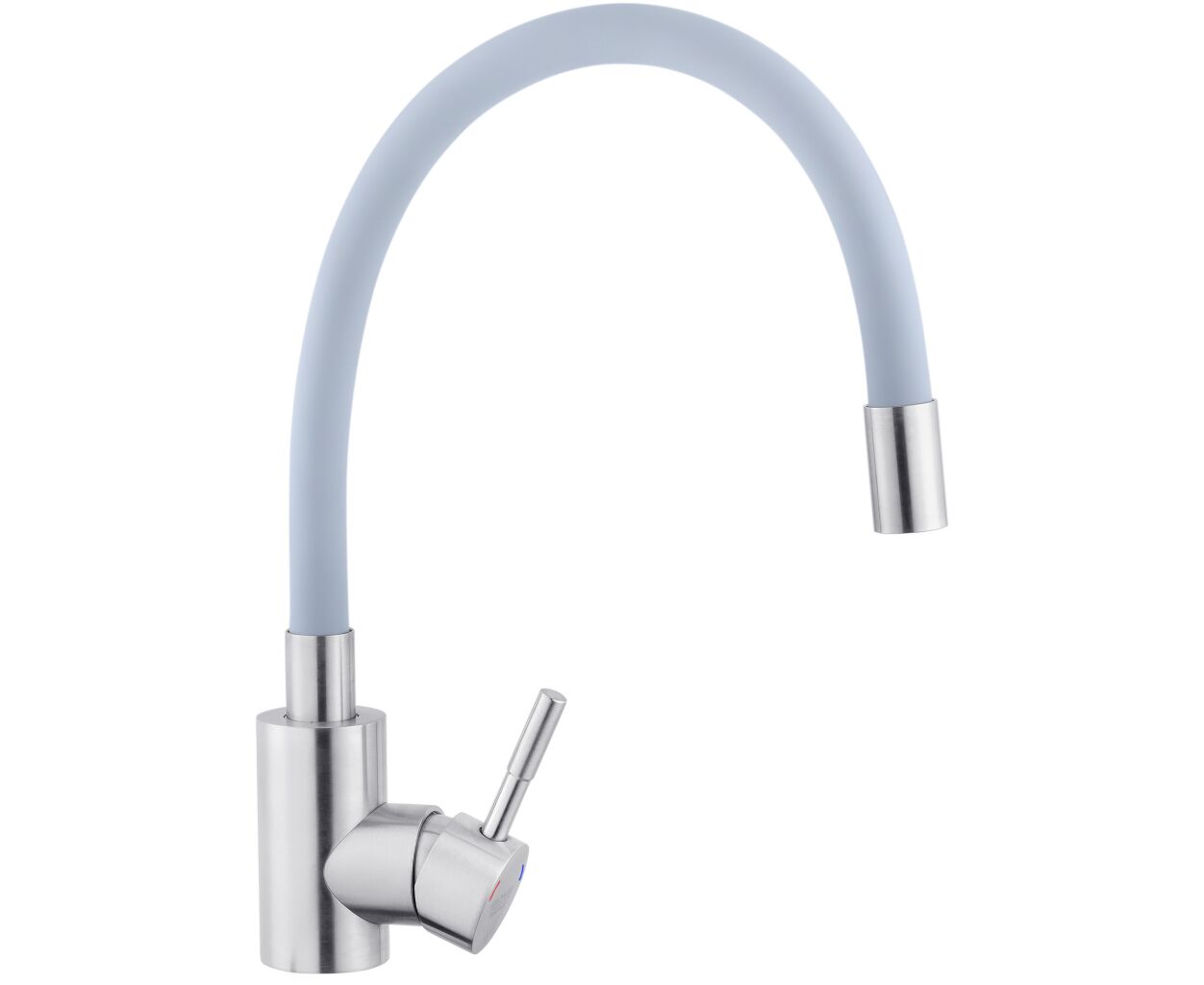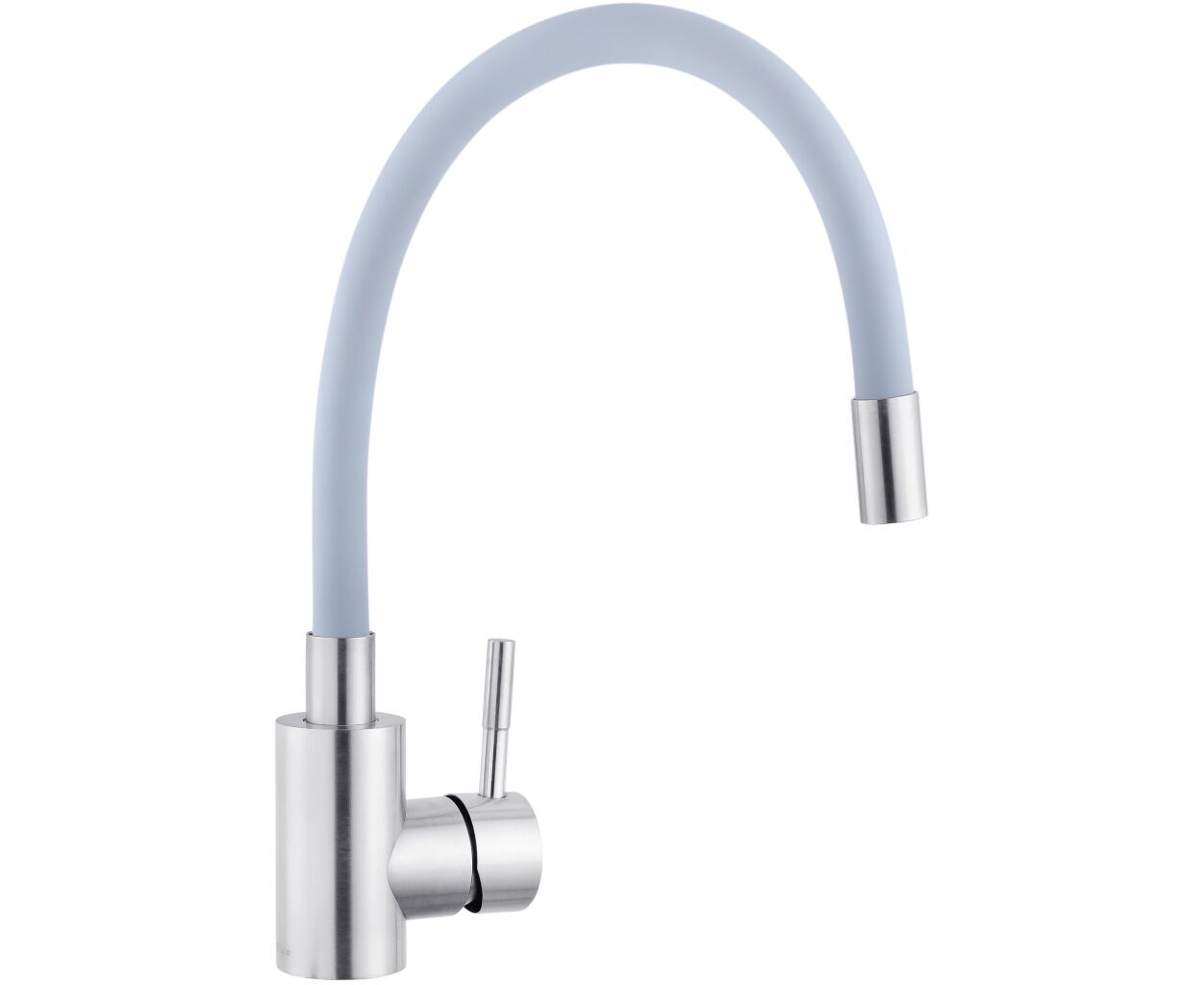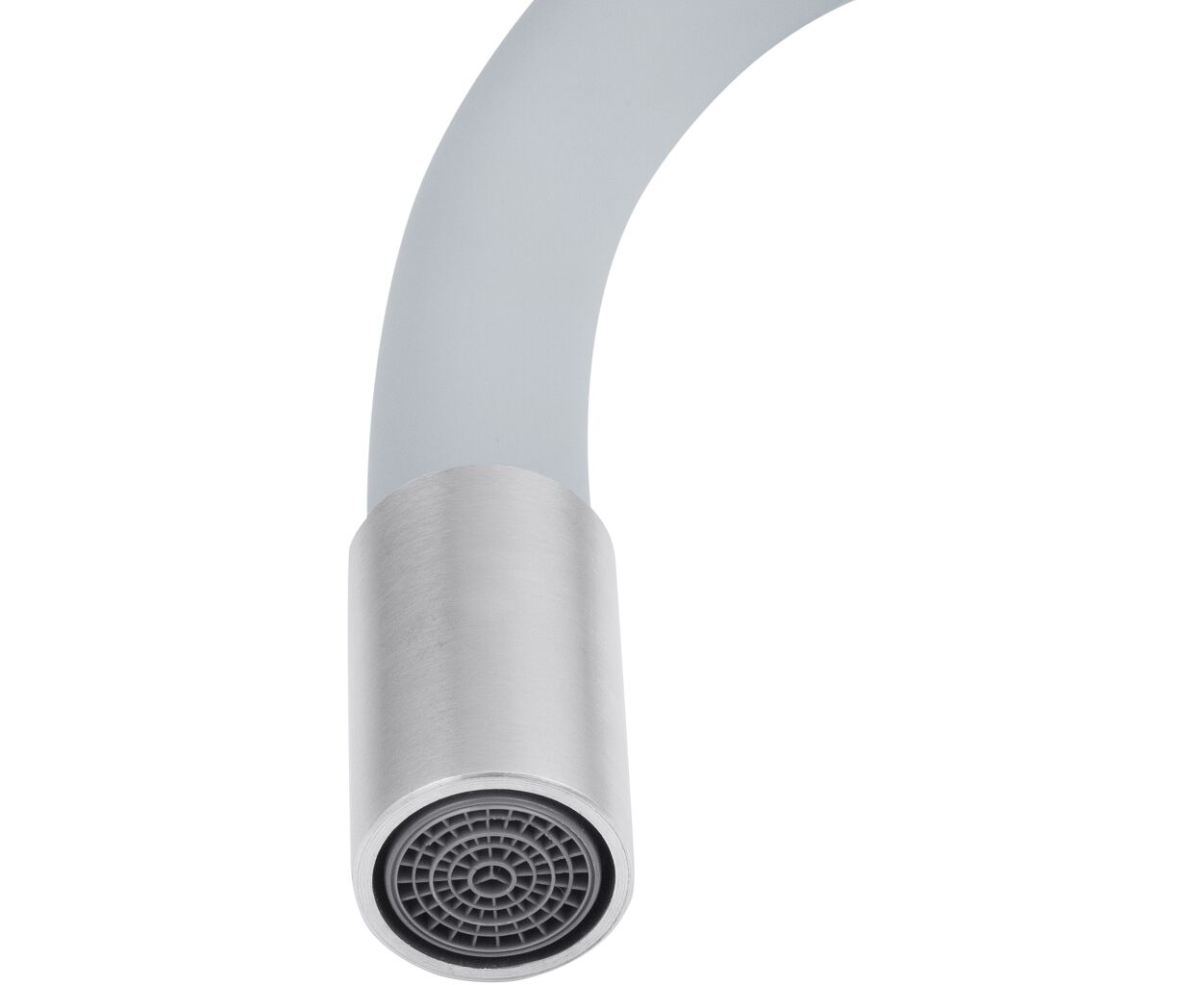 для кухни, однорычажный, врезной, нержавеющая сталь, гибкий, Длина излива - 19 см, Подключение - 1/2", Цвет - серый, Германия