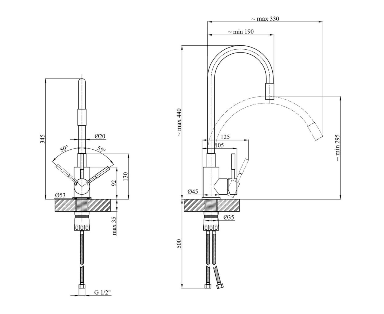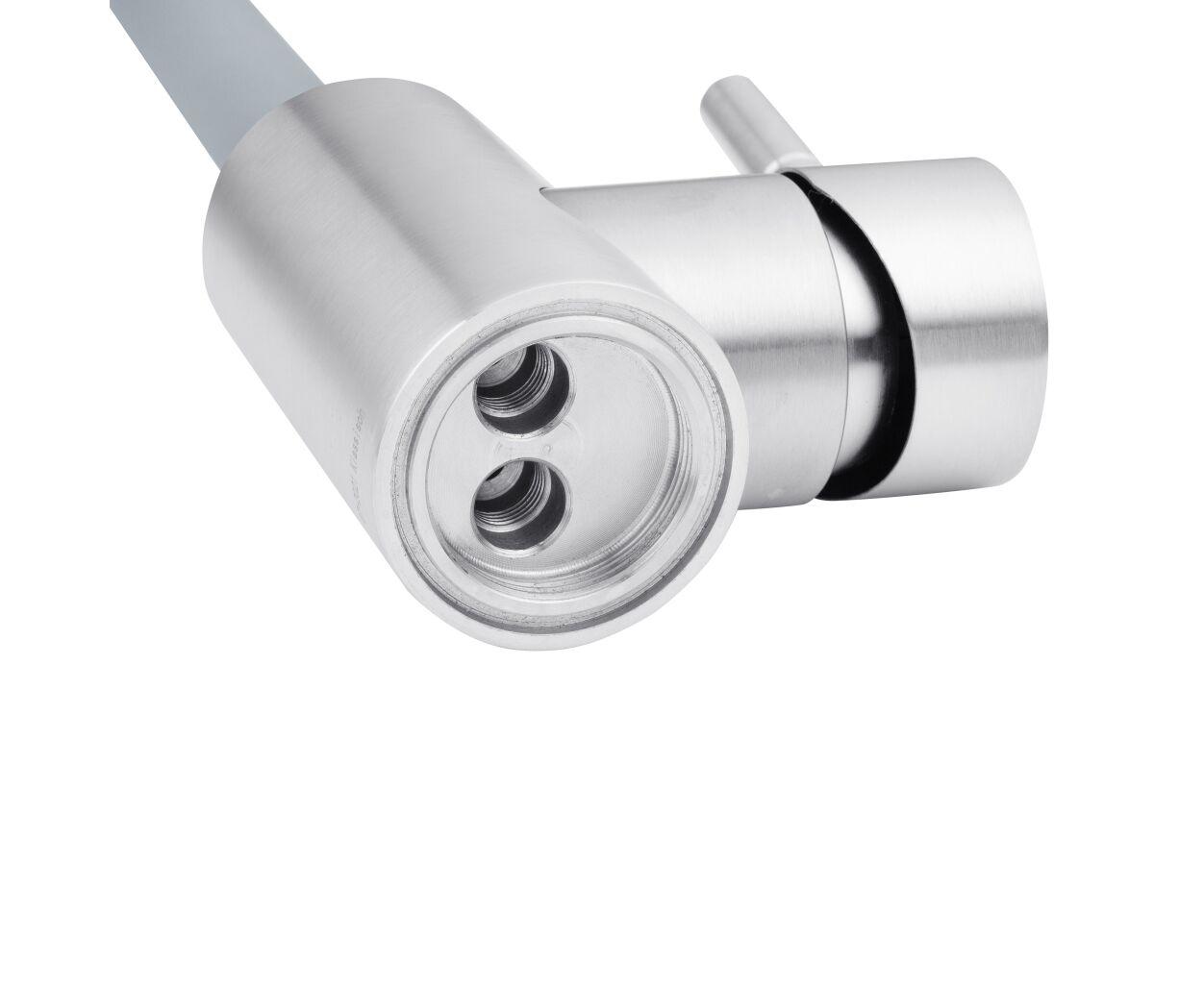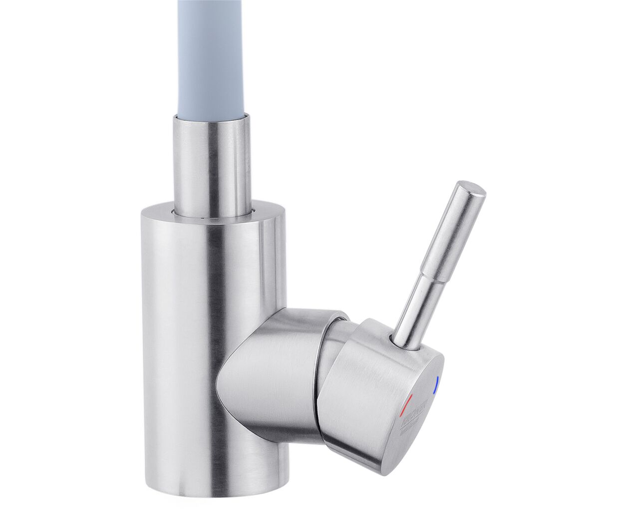 для кухни, однорычажный, врезной, нержавеющая сталь, гибкий, Длина излива - 19 см, Подключение - 1/2", Цвет - серый, Германия