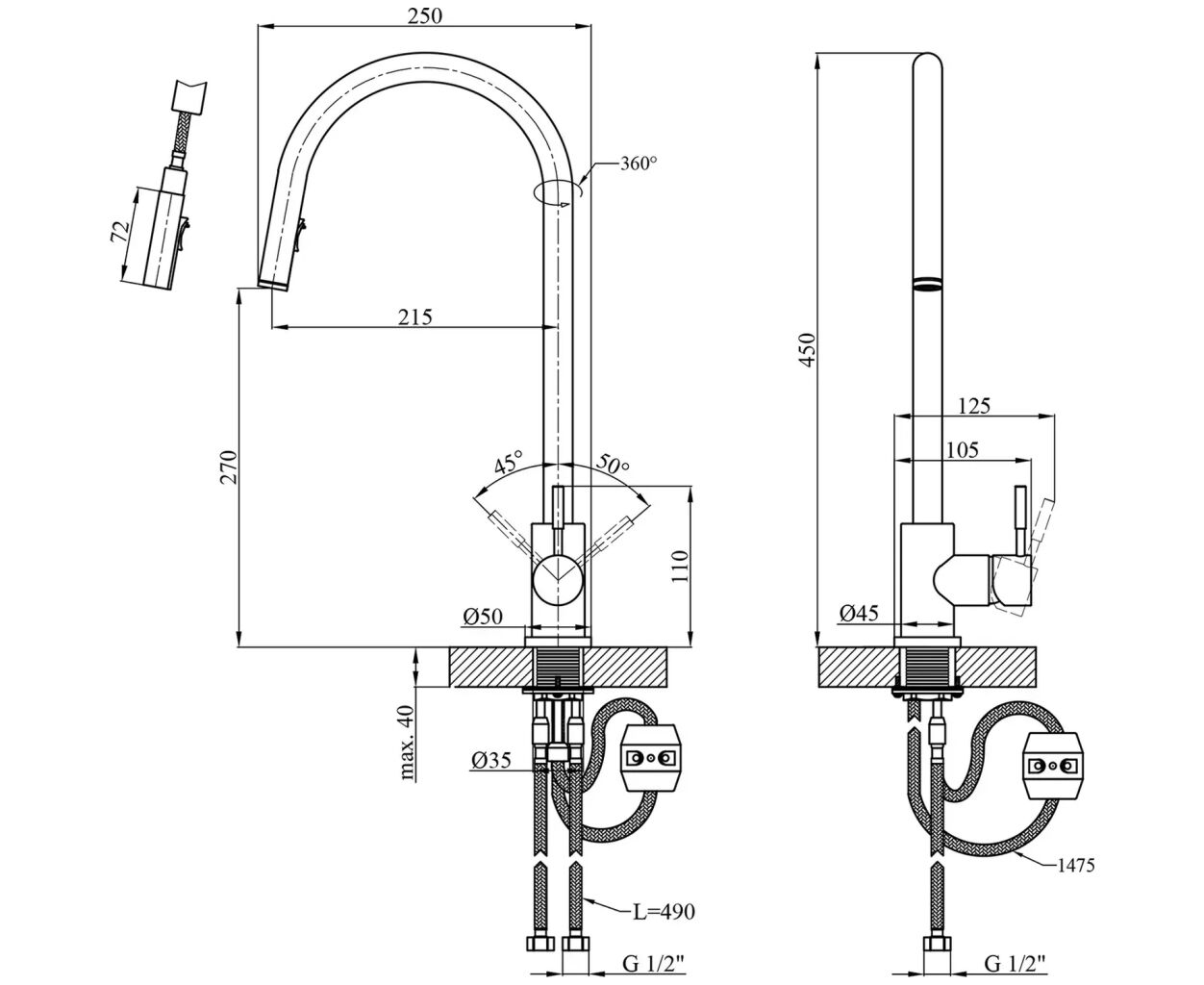 Характеристики Смеситель Kroner Klassisch-PVD03916 (CV032283)