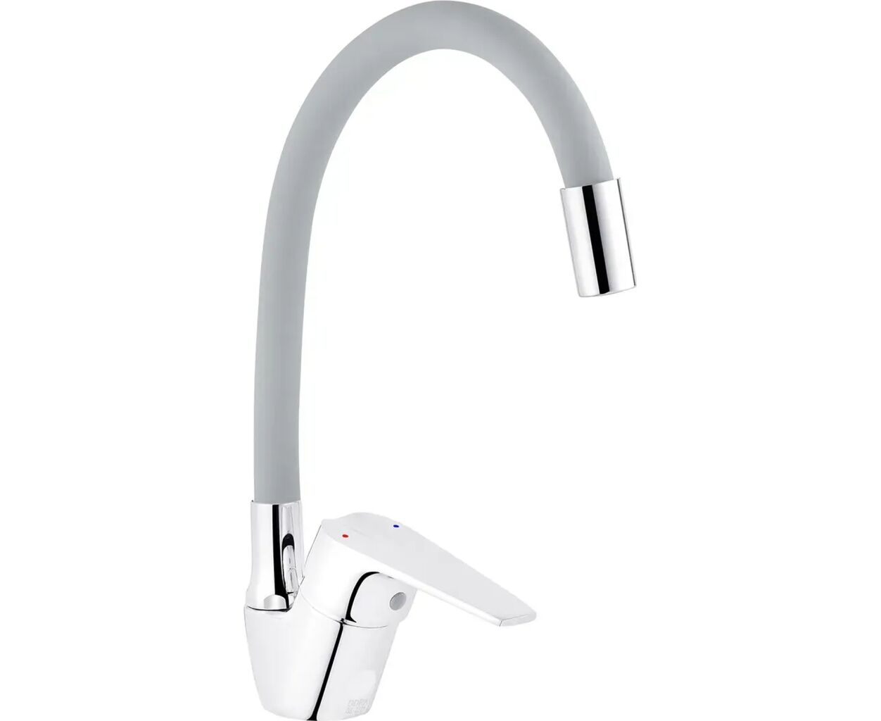 однорычажный, врезной, силумин, гибкий, Длина излива - 21 см, Подключение - 1/2", Цвет - серый, серебристый, Германия