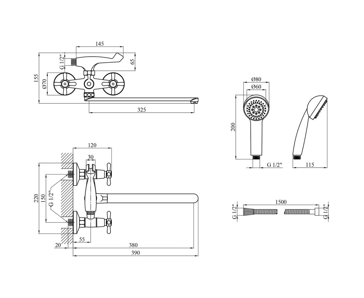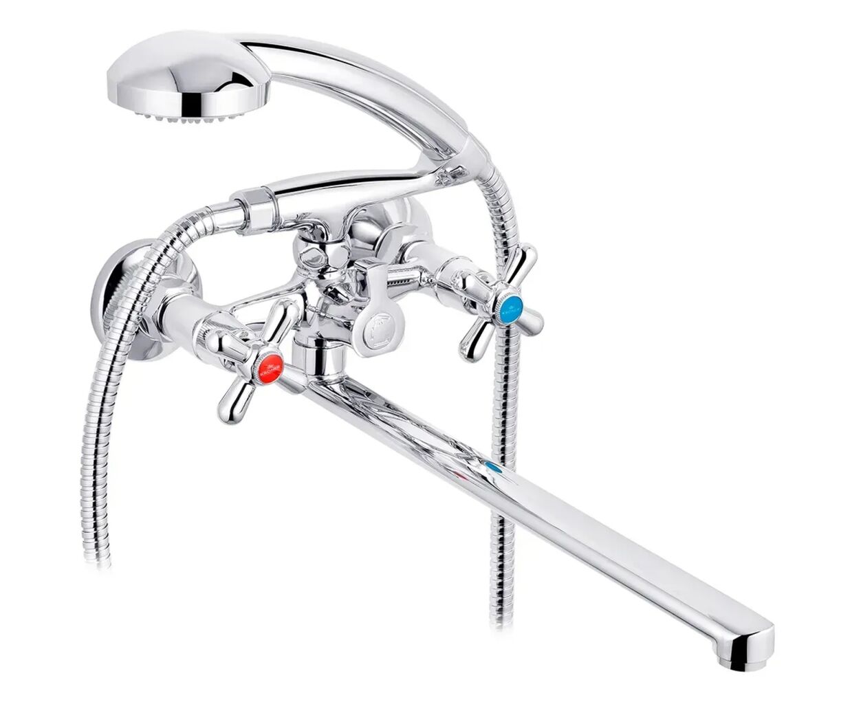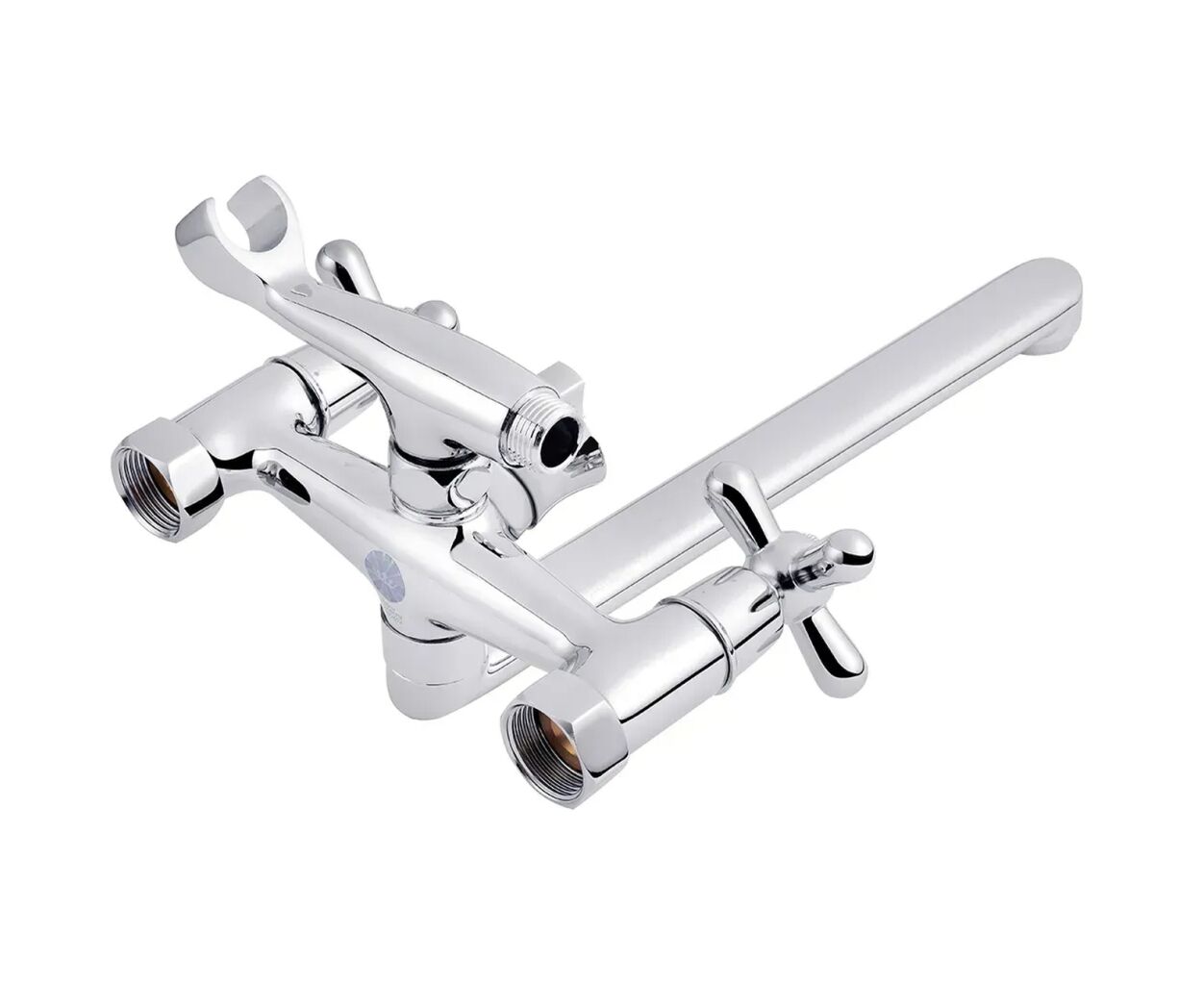для ванны, двухвентильный, настенный, латунь, поворотный, Длина излива - 32.5 см, Подключение - 1/2", Цвет - серебристый, Германия