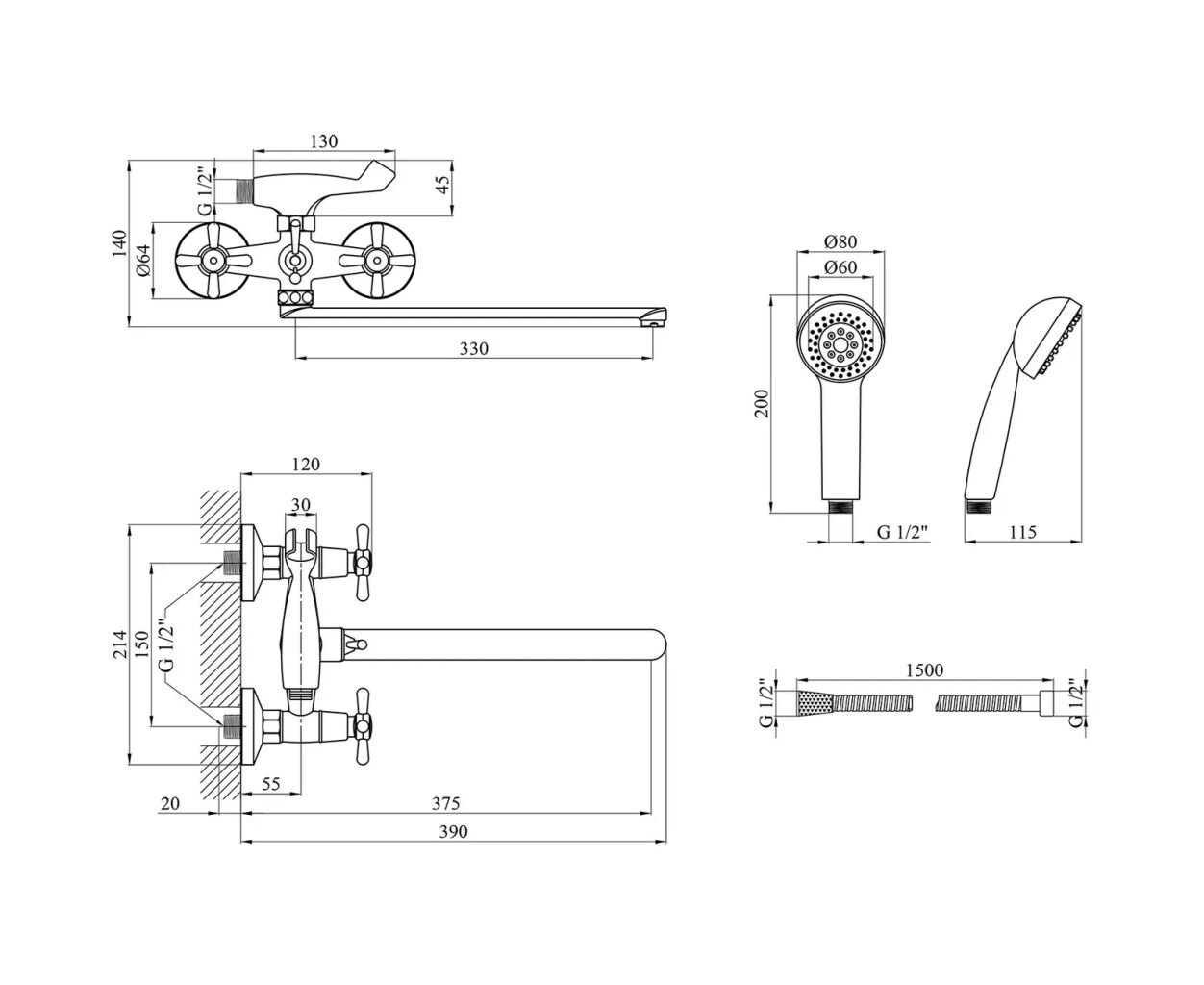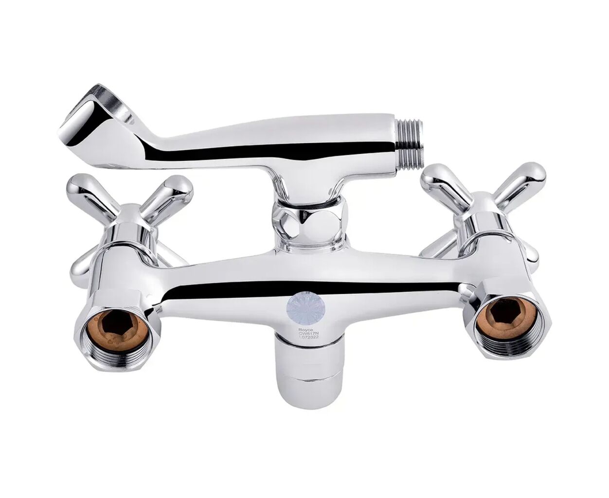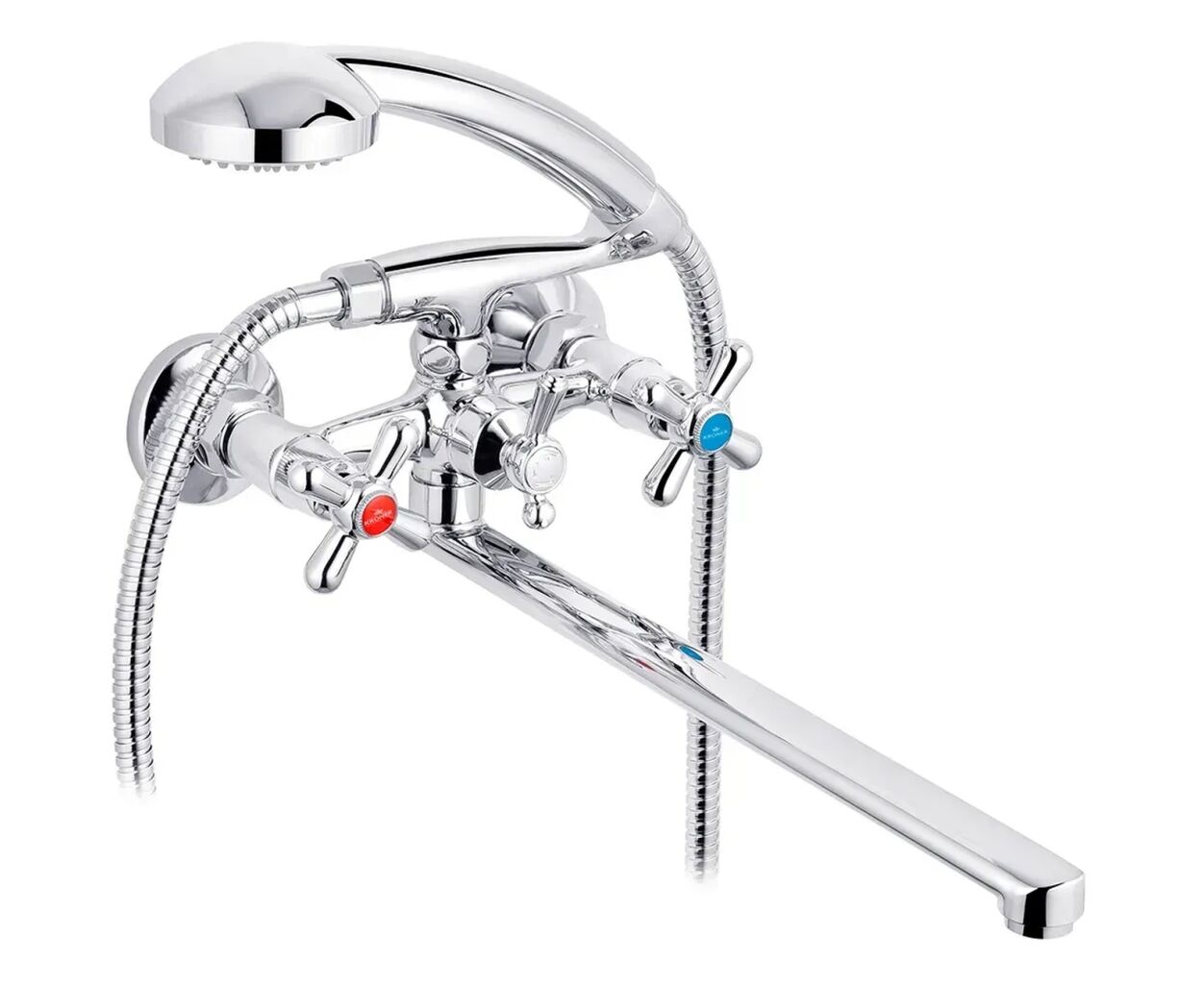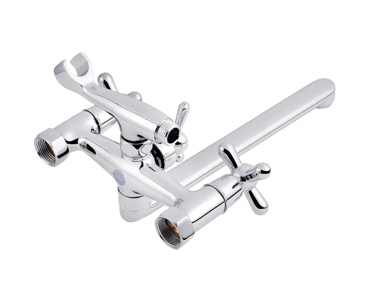 для ванны, двухвентильный, настенный, латунь, поворотный, Длина излива - 33 см, Подключение - 1/2", Цвет - серебристый, Германия