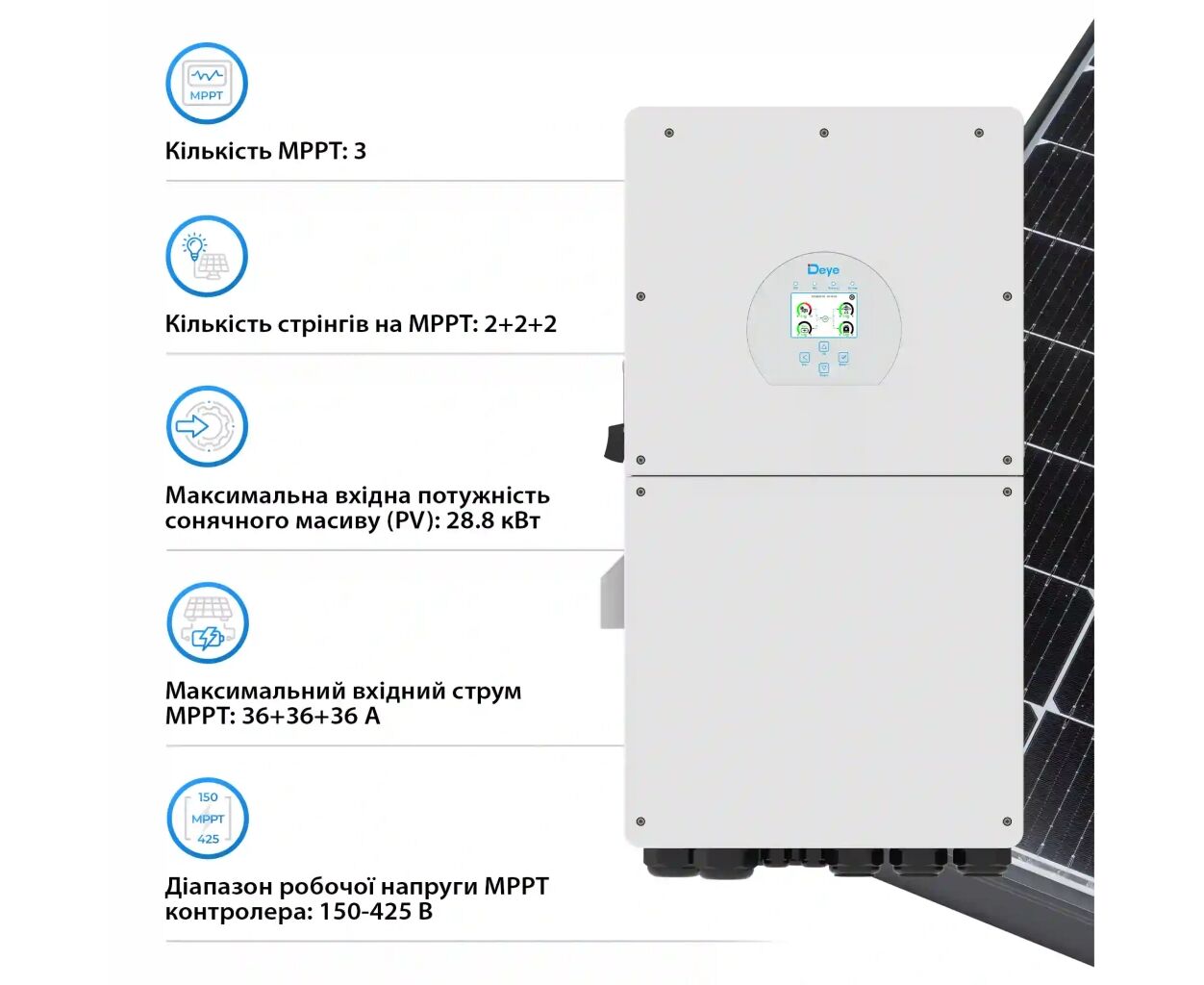 Описание Солнечный инвертор Deye SUN-18K-SG01LP1-EU-AM3-P, 18кВт (SUN-18K-SG01LP1-EU-AM3-P)
