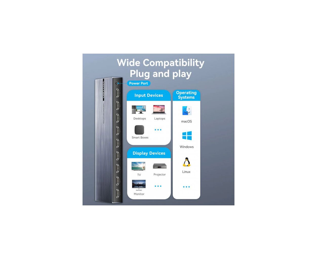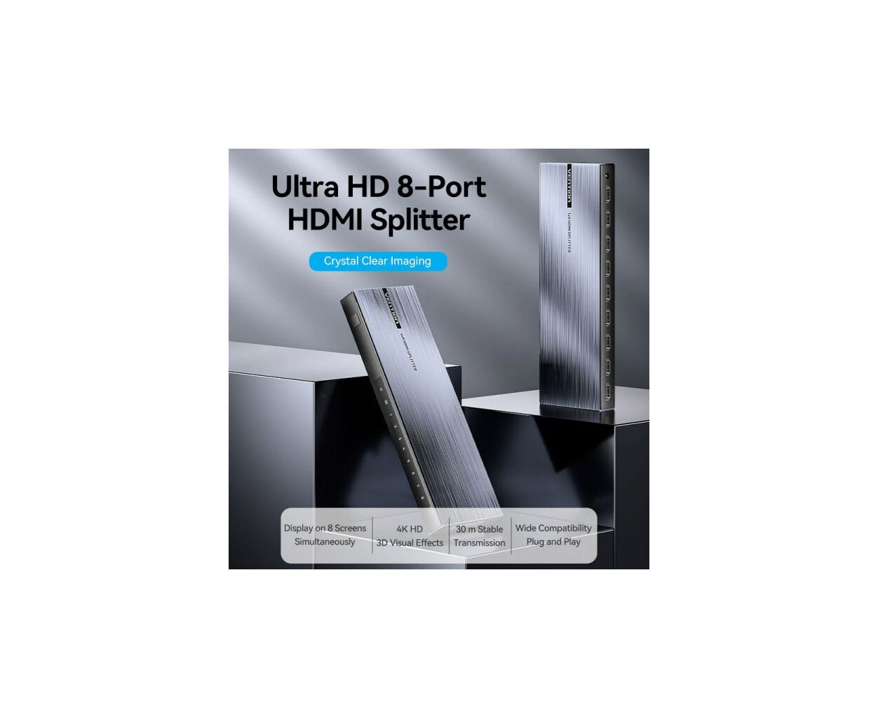 Описание Сплиттер VENTION HDMI 1.4 UHD 4K 30Hz 3D, HDCP 1x8 ports (AKQB0-EU)