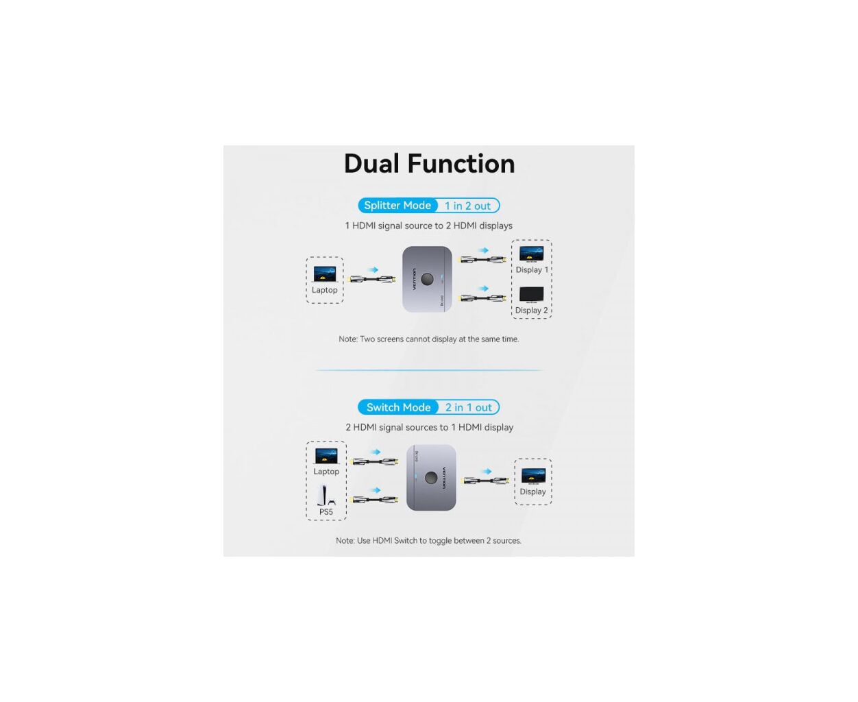 Сплиттер VENTION HDMI 2.1 UHD 8K 60Hz 3D, HDCP HDR Dolby 7.1 перемикач двонаправле (AKPH0)