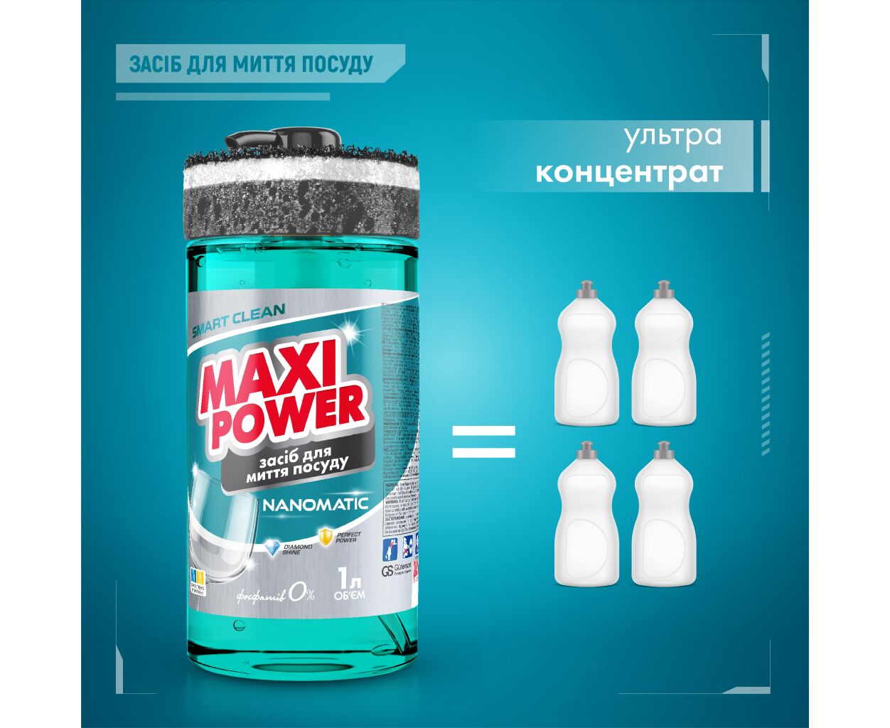 Средство для ручного мытья посуды Maxi Power Nanomatic 1 л (4820204703400)