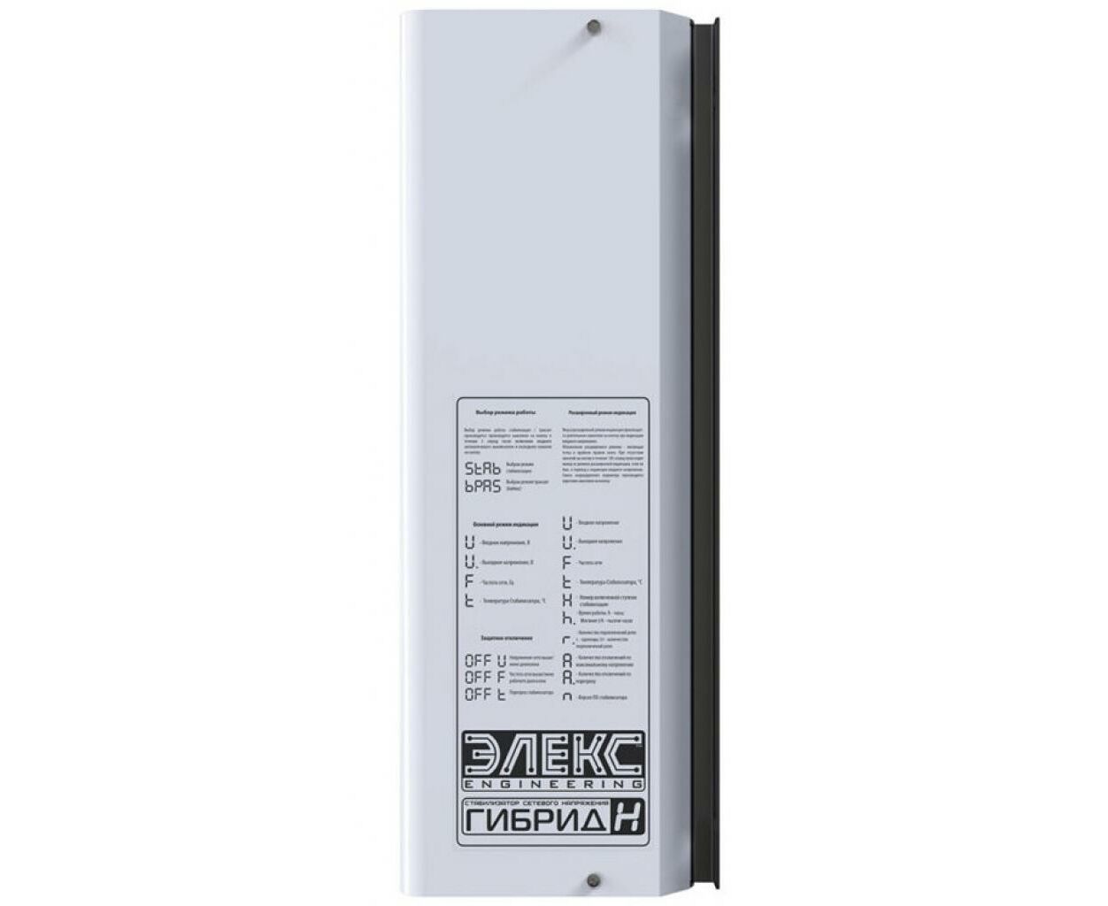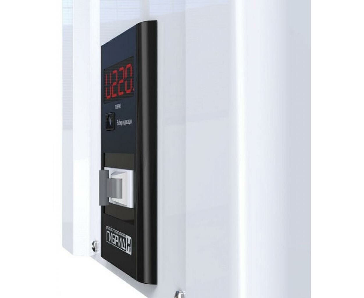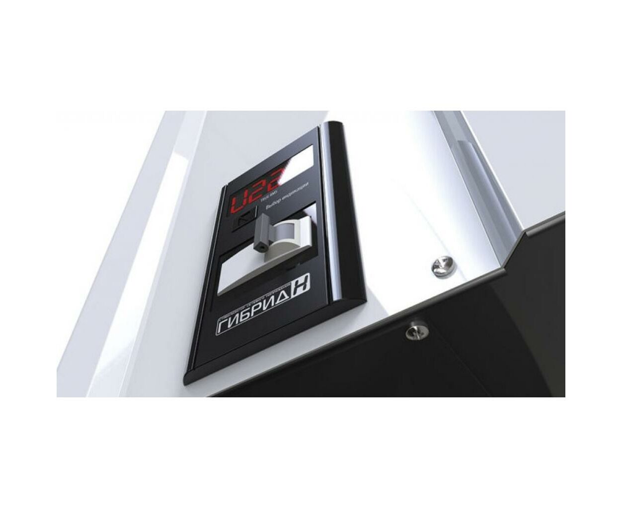 Устанавливать и эксплуатировать стабилизатор Гибрид рекомендуется в сухих и отапливаемых помещениях. Настенную установку рекомендуется производить в вертикальном положении (вентиляторами вверх), оставив сверху и снизу 10-15 см для охлаждения. Подключение осуществляется к существующей проводке через клеммную колодку для аппаратов от 5.5 до 9 кВт и через встроенный шнур с вилкой и розеткой на корпусе стабилизатора для моделей 2.2 и 3.5кВт.