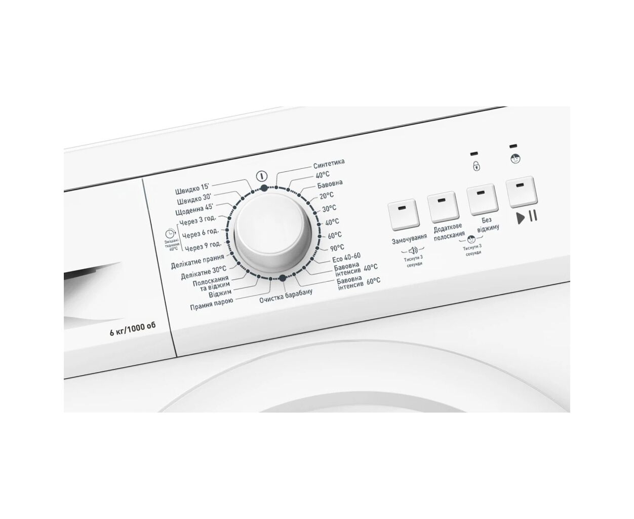 тип - автомат, коллекторный, отдельностоящий, фронтальная загрузка, Максимальная загрузка белья - 6 кг, Максимальная скорость отжима - 1000 об/мин, количество программ - 23, очистка барабана, отсрочка старта, обработка паром, замок от детей, Цвет корпуса - белый