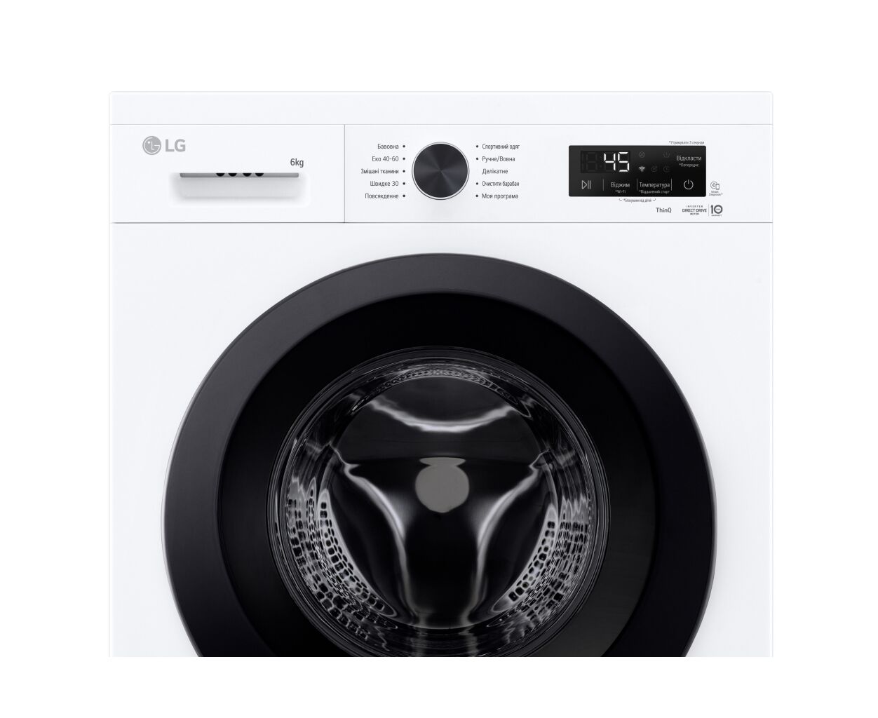 тип - автомат, инверторный, отдельностоящий, фронтальная загрузка, Максимальная загрузка белья - 6 кг, Максимальная скорость отжима - 1200 об/мин, количество программ - 10, есть, самодиагностика, отсрочка старта, обработка паром, замок от детей, Inverter Direct Drive, управление по WiFi, Корпус - узкий, Цвет корпуса - белый