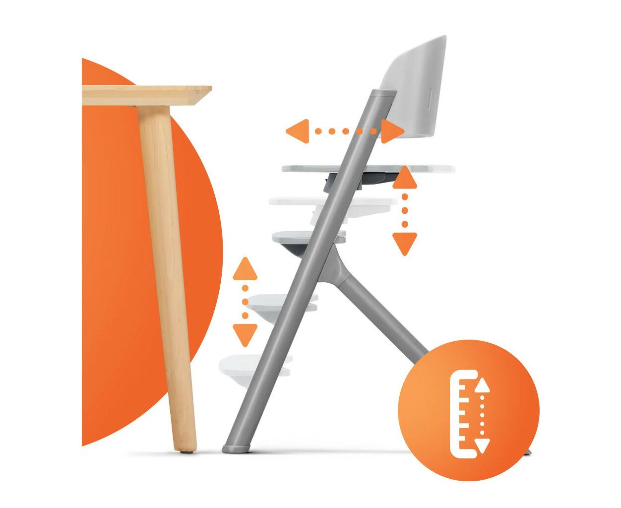 4-ступенчатая регулировка высоты сиденья позволяет вашему ребенку свободно есть или играть за столами разной высоты.