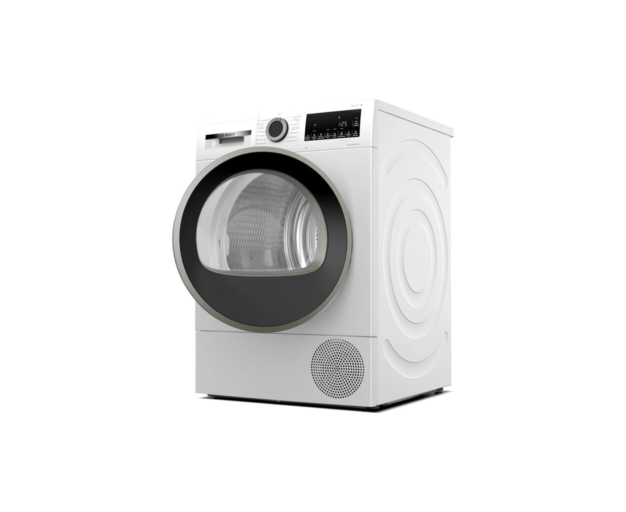 Устройство оснащено индикаторами заблокированного фильтра и заполненного резервуара, фильтром для ворса и боковыми стенками с антивибрационным дизайном, что уменьшает шум и вибрации во время работы. Угол открывания дверцы составляет 170°, объем барабана – 112 л, а уровень шума достигает 63 дБ, что делает процесс сушки комфортным и тихим.