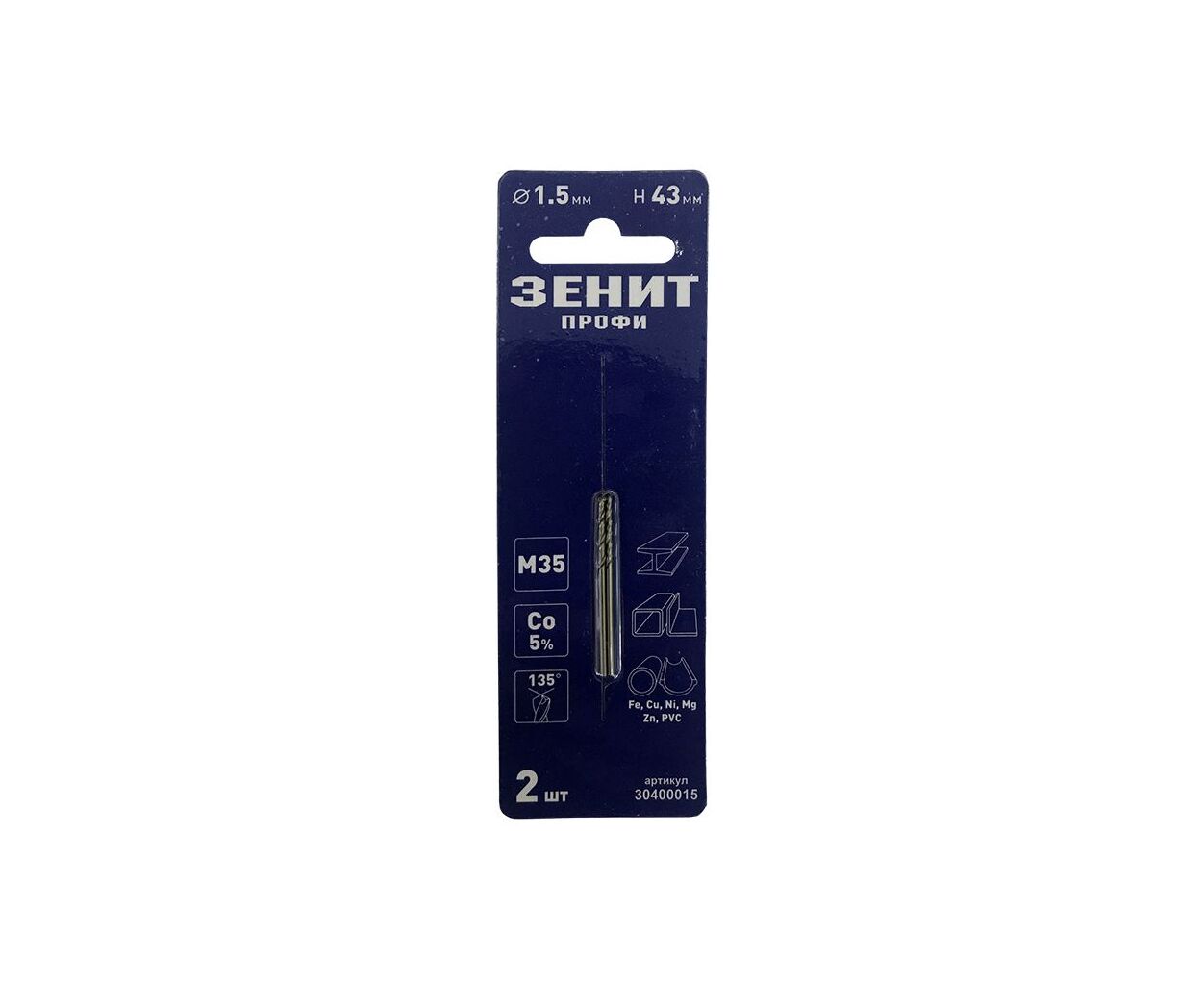 Сверло Зеніт "ПРОФІ" по металлу с кобальтовым покрытием 1,5х43мм (2шт) (30400015)