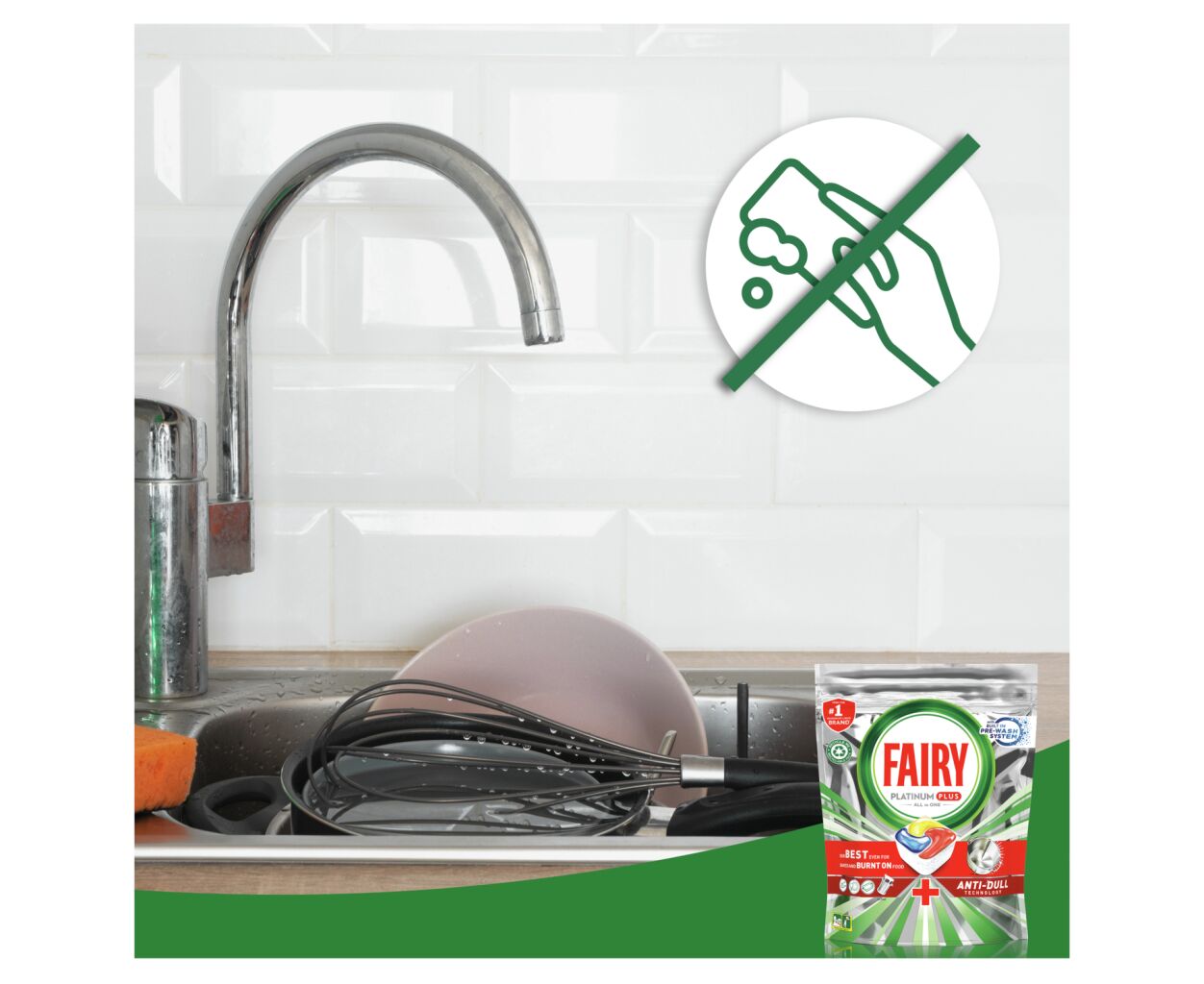 Капсулы для посудомоечной машины Fairy Platinum Plus Все-в-одном обеспечивают самое лучшее очищение от Fairy и помогают удалить даже образовавшийся со временем налет, возвращая посуде ее первоначальный блеск. Fairy Platinum Plus оснащены встроенной системой предварительного ополаскивания и выполняют этот шаг за вас. С Fairy Platinum Plus вам не нужно предварительно смывать остатки с посуды, что позволяет экономить воду и сделать мытье посуды более экологичным. Fairy объединяет гель и порошок в одной мощной капсуле. Оболочка капсулы быстро растворяется в воде и подходит для коротких циклов мытья посуды, ведь средство начинает работать незамедлительно. А еще капсулы очень удобно использовать. Не нужно разворачивать — просто поместите их в отсек посудомоечной машины для моющего средства.