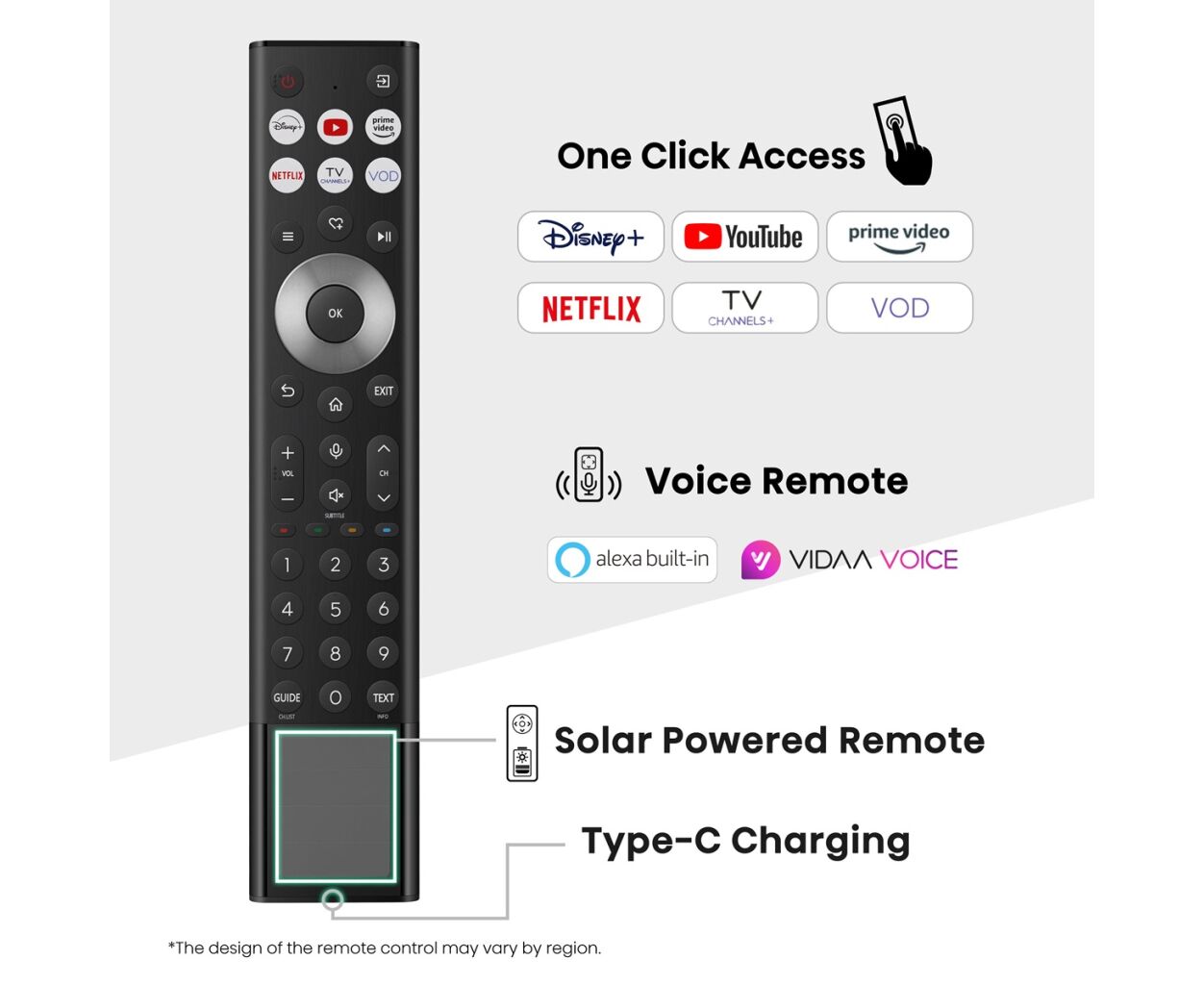 Пульт дистанционного управления с солнечными элементами от Hisense использует энергию окружающего света, заряжаясь как от естественного освещения, так и через USB-C. Этот инновационный дизайн поддерживает экологичность, уменьшая электронные отходы, а также снижает расходы благодаря энергоэффективной работе. Поднимите качество просмотра на новый уровень и одновременно внесите вклад в сохранение окружающей среды - без каких-либо компромиссов в удобстве.