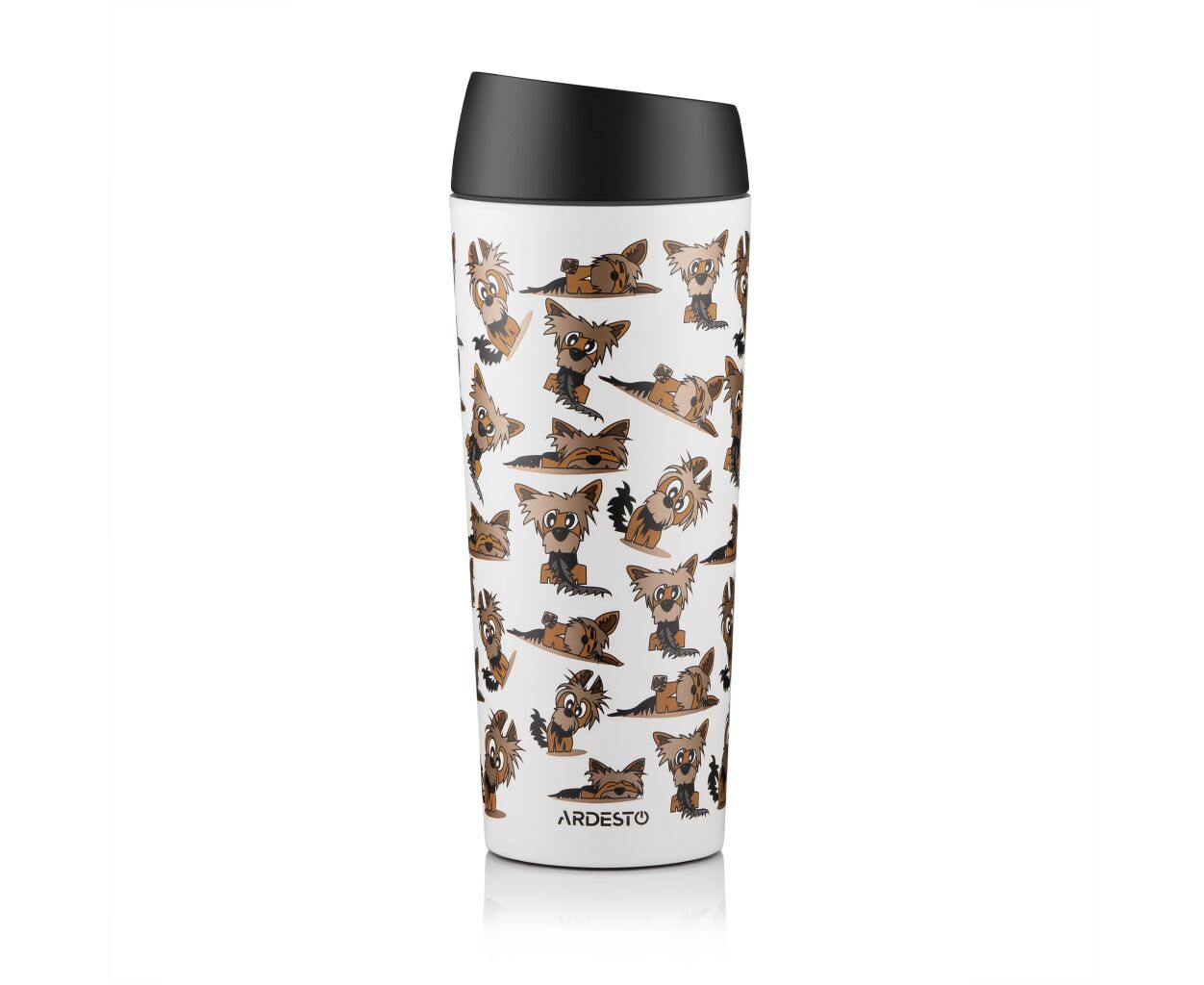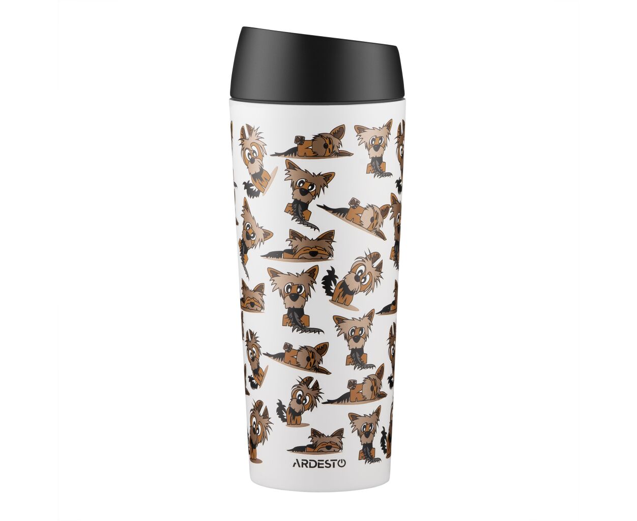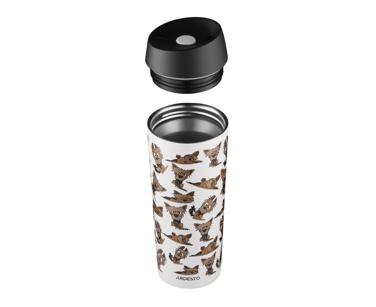 Термокружка Ardesto Coffee Time Animals Yorkie 450мл, нержавіюча сталь, сіро-бежевий (AR2645YT)