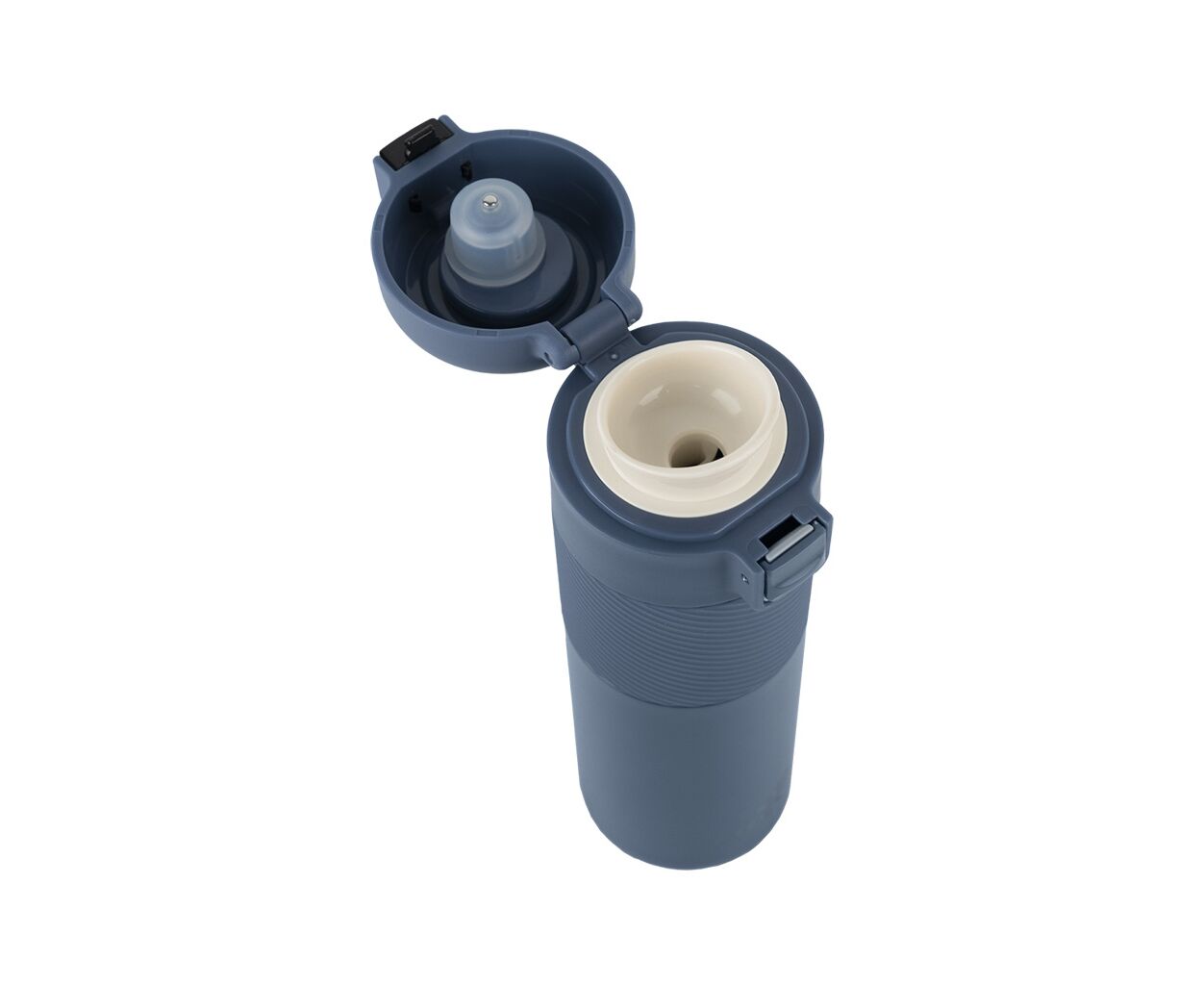 Крышка открывается нажатием кнопки - этот механизм защищает напиток от случайных проливаний.