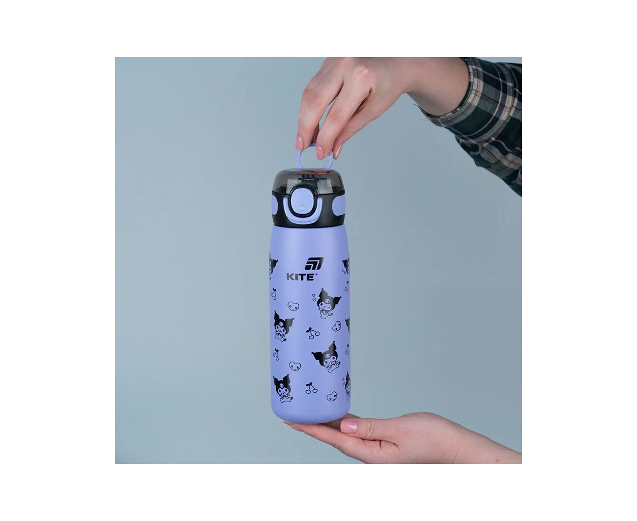 Лицензионный дизайн Kuromi понравится школьникам. Kuromi всегда выделяется среди других – и твой термос тоже! Рисунок с забавной озорницей непременно привлечет внимание и придаст уверенности.