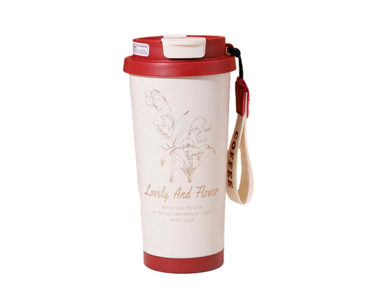 Термокружка Merlion TermCoffee 500 мл з трубочкою, біла з червоним (TermCoffee-500WR)