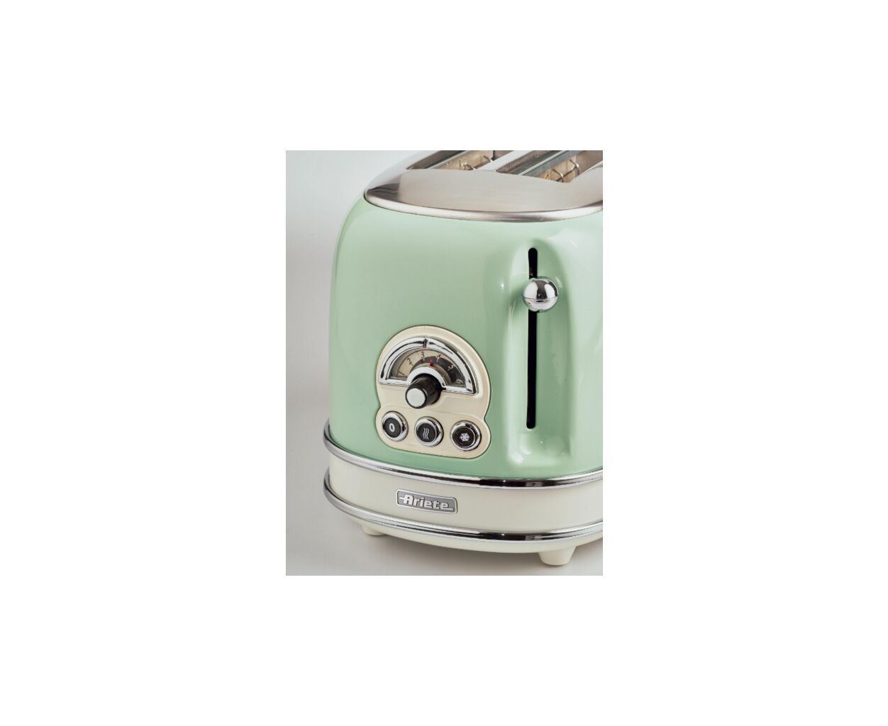 Выполненный в стильном ретро-дизайне тостер 155 GR серии Vintage от итальянской компании Ariete — это компактная модель мощностью 810 Вт.