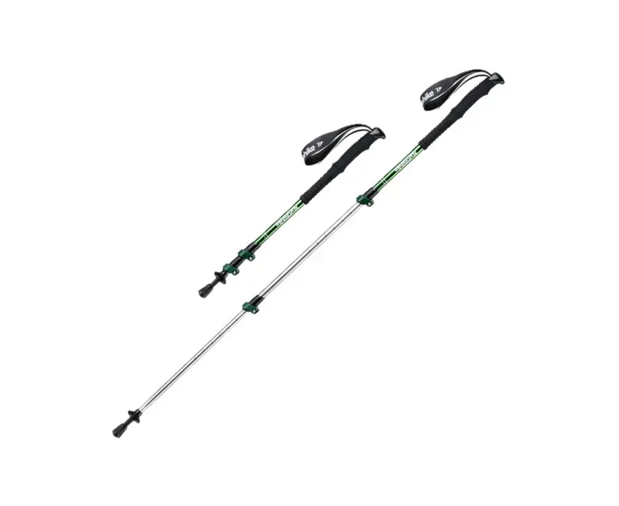телескопические, фиксация - внешняя, количество палок - 1, количество секций - 3, материал палки - алюминий, особенности конструкции - регулируемая петля, сантиметровая шкала, 2 насадки, максимальная длина - 120 см, общий вес - 233 г, Цвет - зеленый