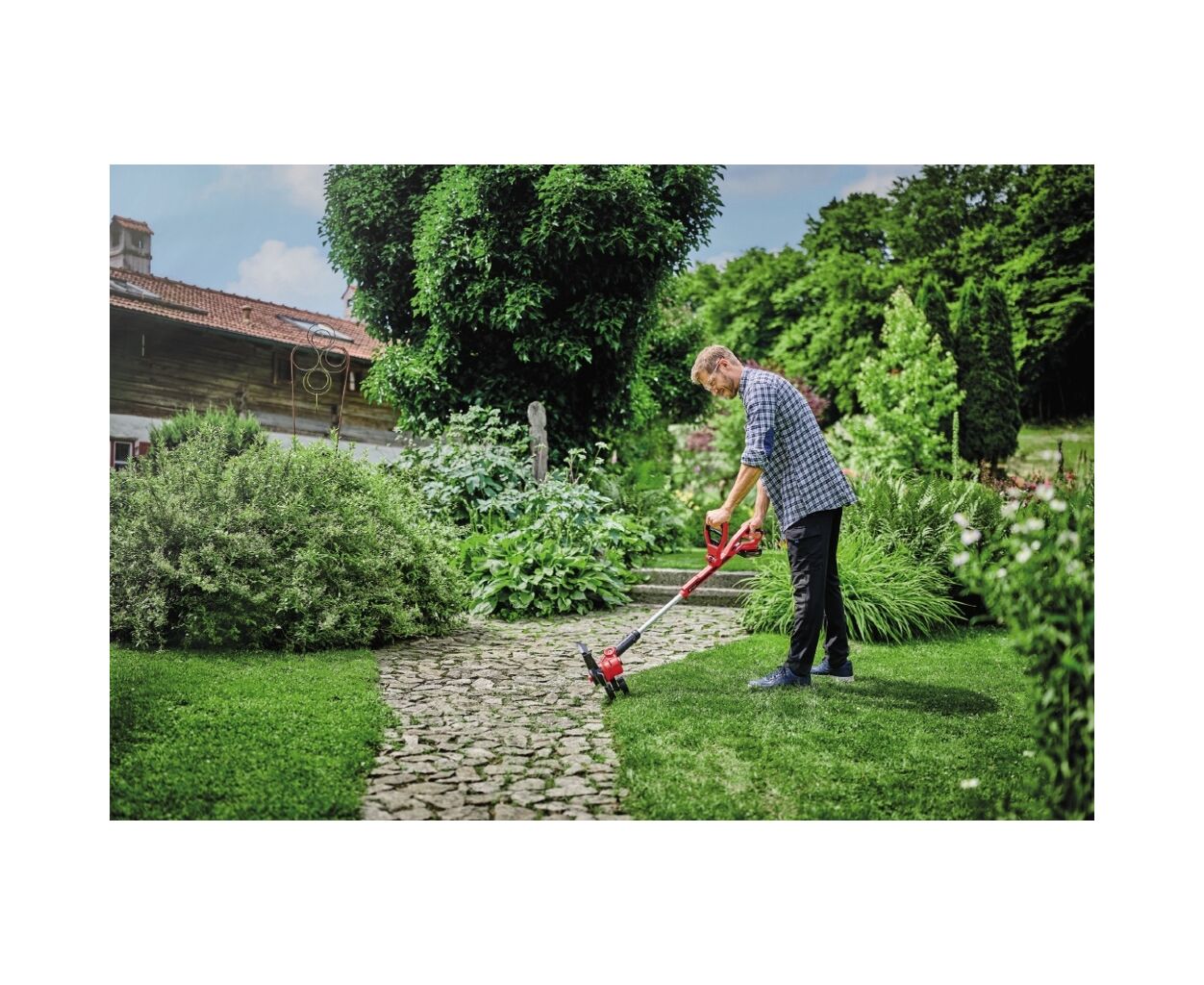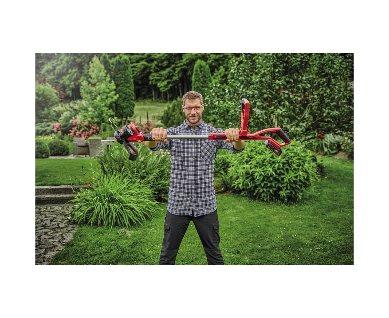 Телескопическая длинная ручка с плавной регулировкой триммера GE-CT 18/30 Li-Solo может быть настроена для удобной работы пользователей разного роста. Даже сложные условия работы, такие как вертикальные поверхности и кромки газонов будут легко и комфортно обработаны благодаря мягкой накладке на ручке, плавной регулировке дополнительной рукоятки и головой двигателя, которую может повернуть на +/- 90° и наклоняться в трех различных положениях.