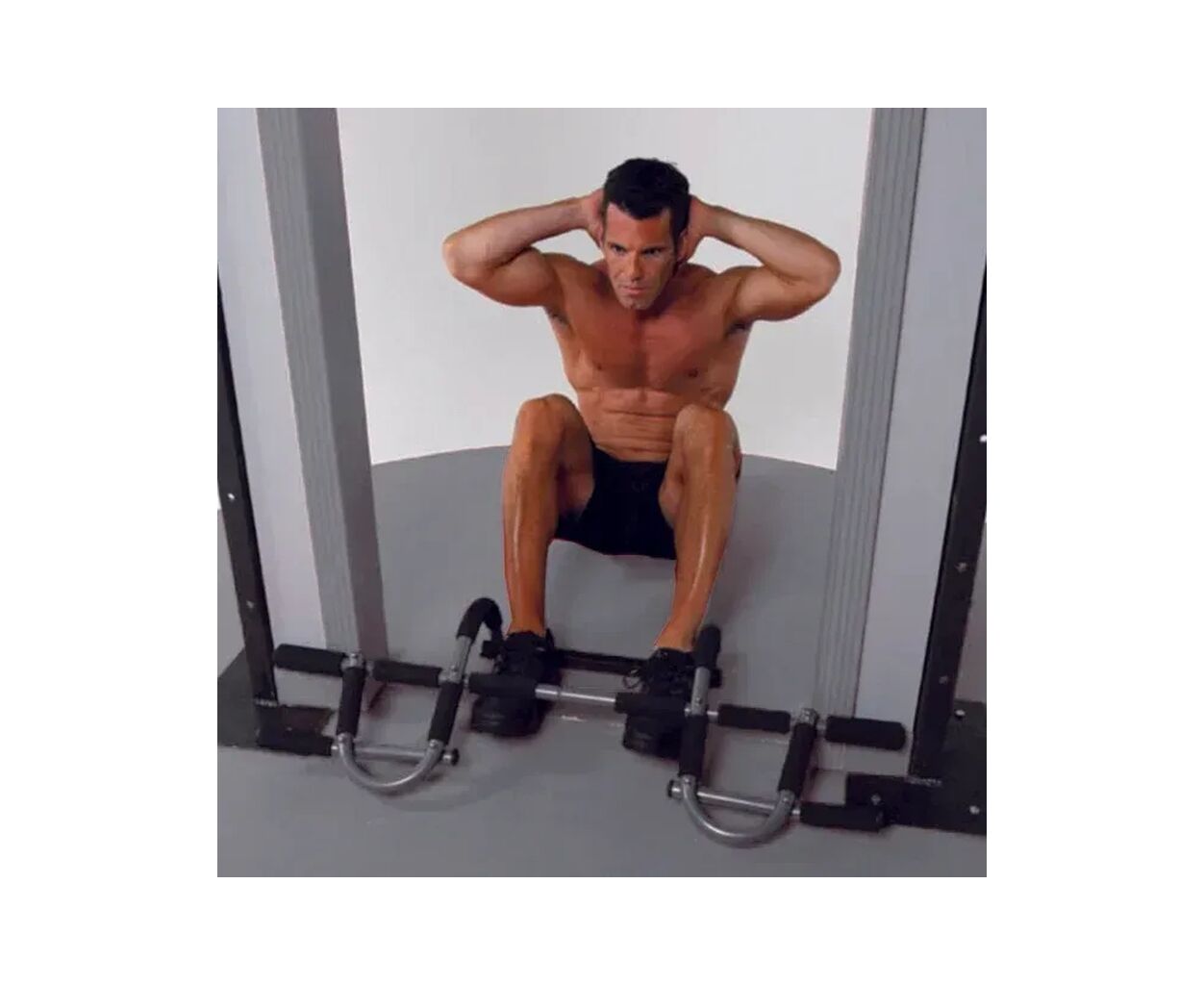 Главная особенность модели - это возможность мгновенно изменить положение. Тренажер крепится на анкер с крюком (в комплект не входят). Вам достаточно просто снять его и использовать, как упор для занятий на пресс или как брусья для проработки трицепса и трапеции.