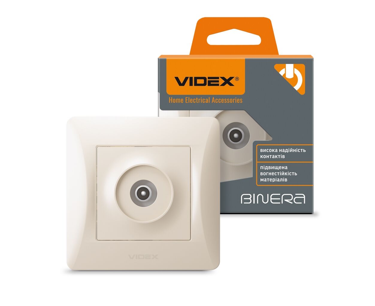 Описание ТВ розетка Videx BINERA TV одинарная кремо (VF-BNSK1TVME-CR)