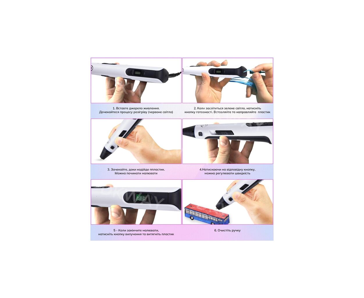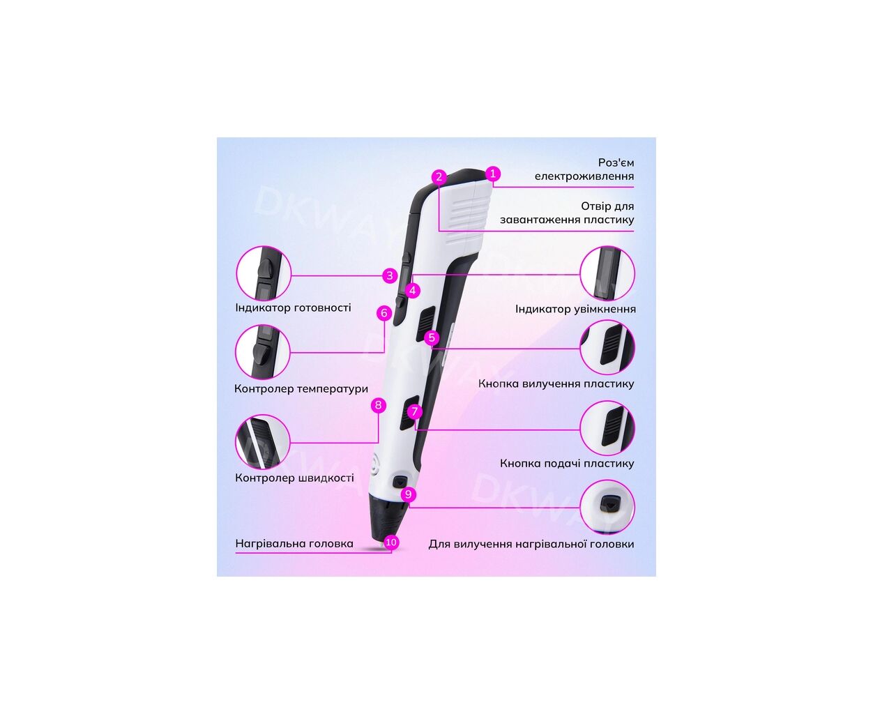 Опис 3D - ручка DKWAY з Планшетним Екраном з різнокольоровим Еко Пластиком 100 м (20 кольорів) White (415457583)