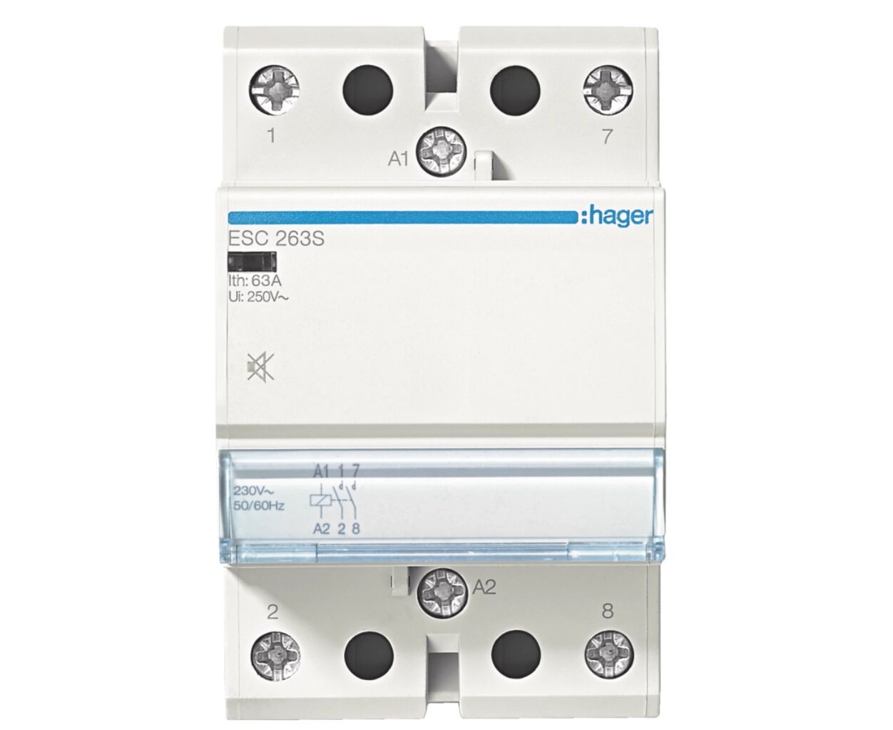 Опис Автоматичний вимикач Hager 63 A 230V 2NO (B) (ESC263S)