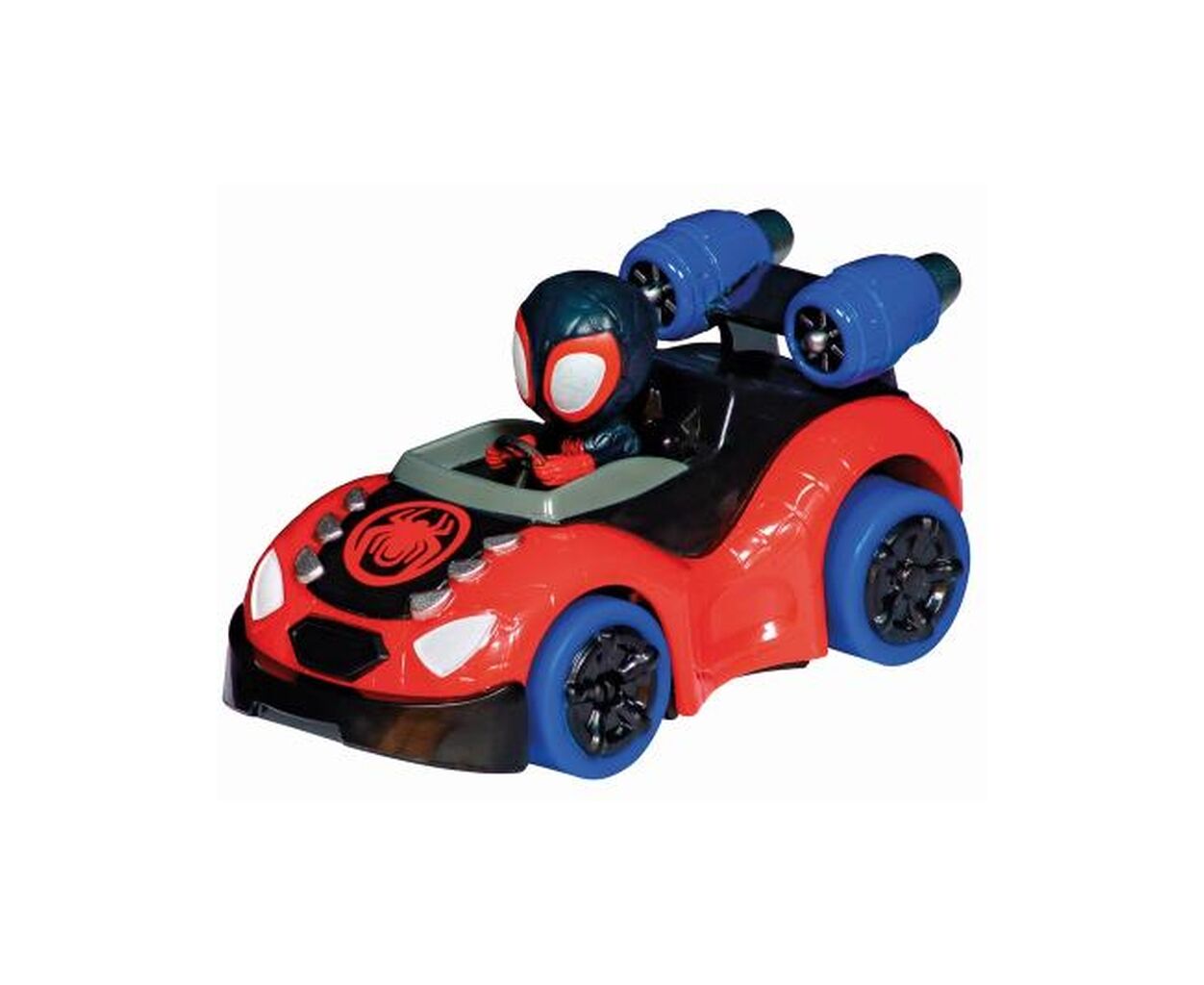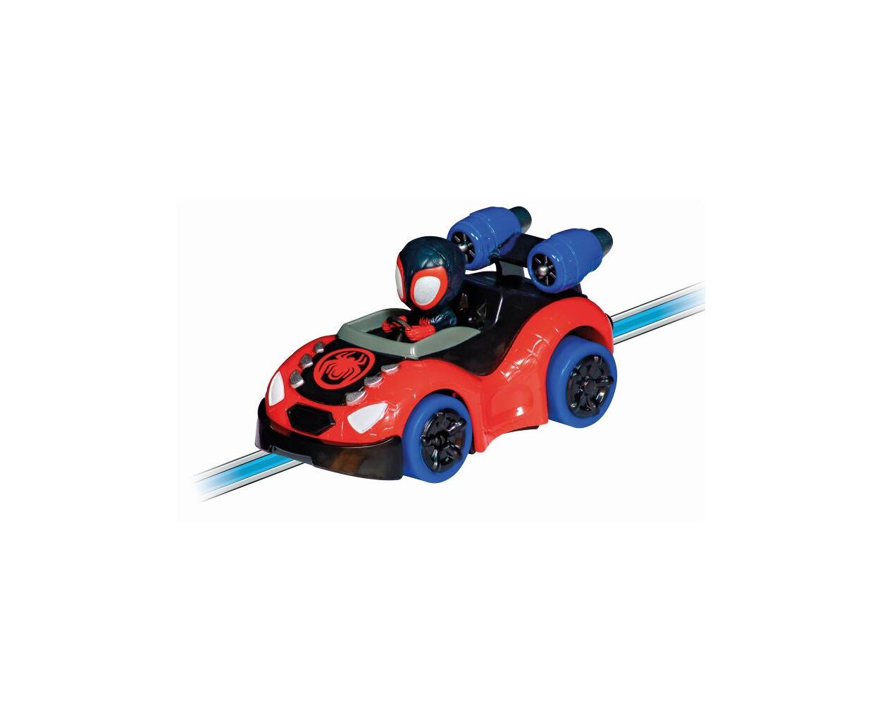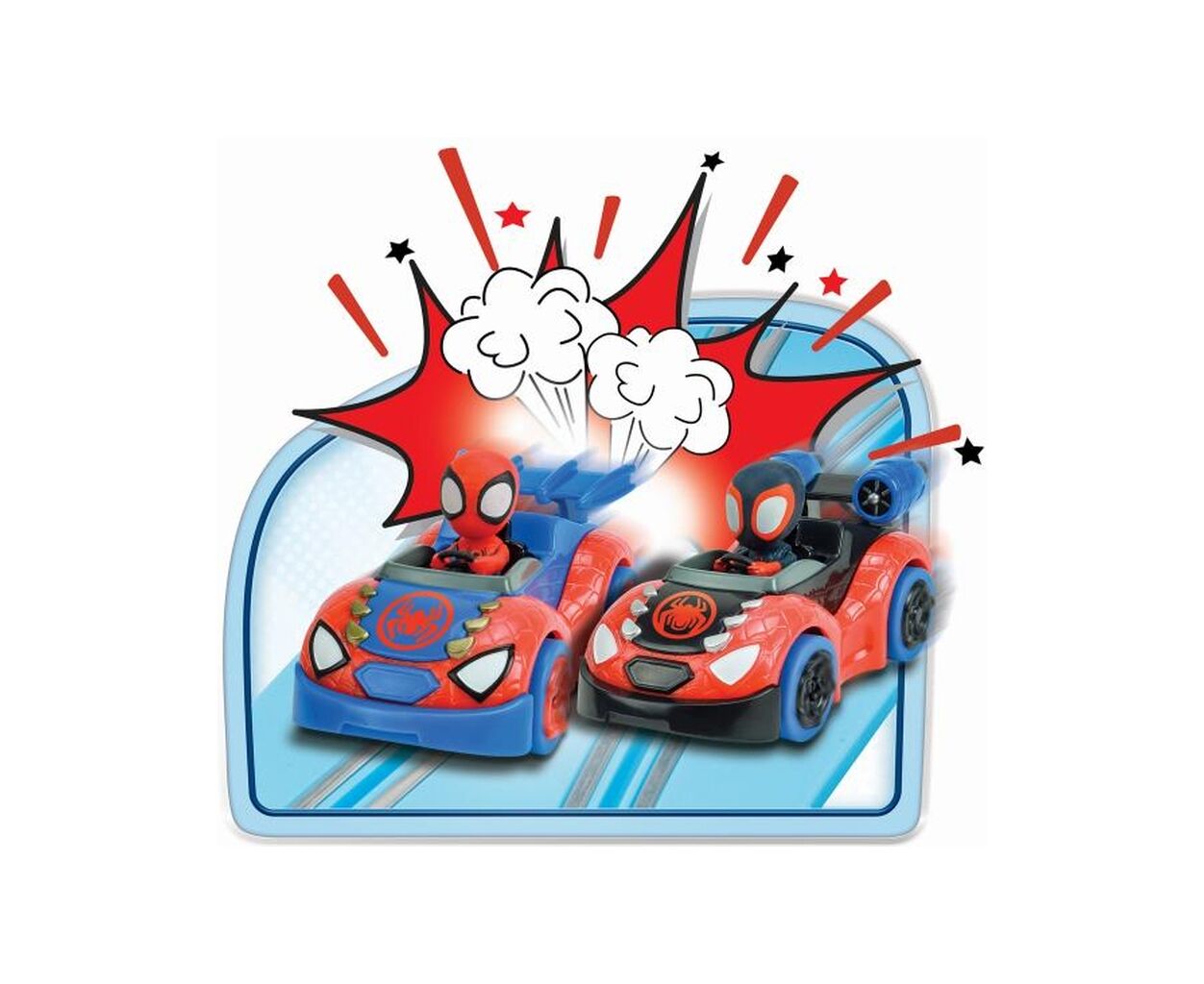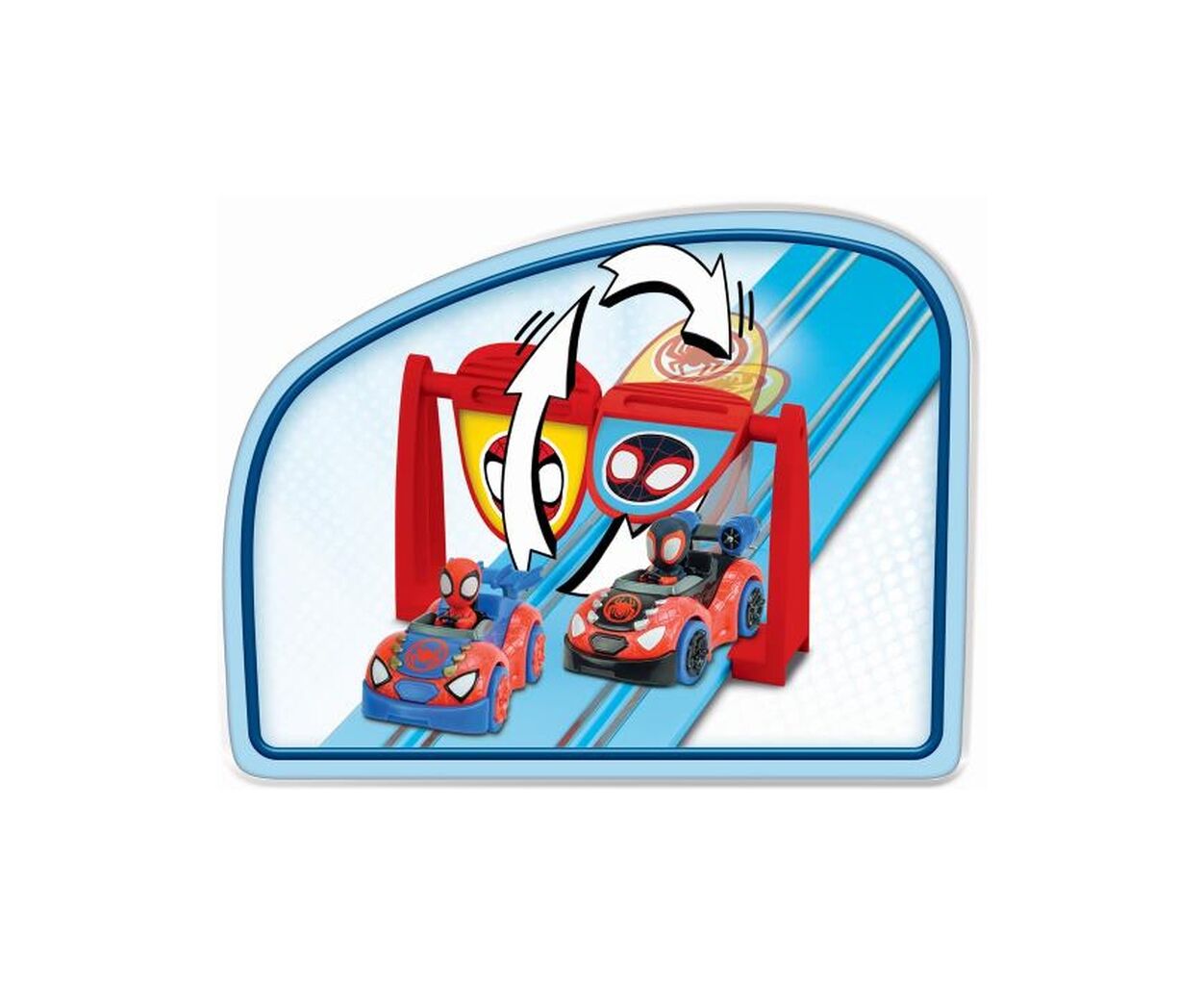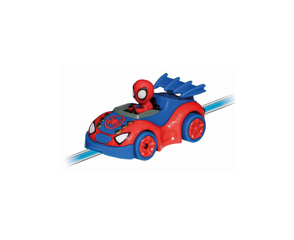 Пітер Паркер приєднується до свого друга Майлза Моралеса - або Спін - із серії «Павук та його супердрузі» і по-справжньому натискає на газ на 2.9-метровій трасі. Гоночна траса Carrera FIRST пропонує юним гонщикам серйозні випробування – включаючи швидкісні прямі, повороти, вузькі ділянки – та море задоволення! Перекидні елементи мають привабливі емблеми Павука на яскраво-синій трасі. Гру збагачують декоративні елементи із мотивами із серії.