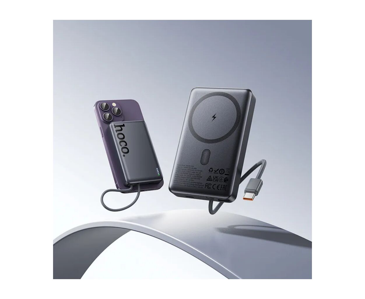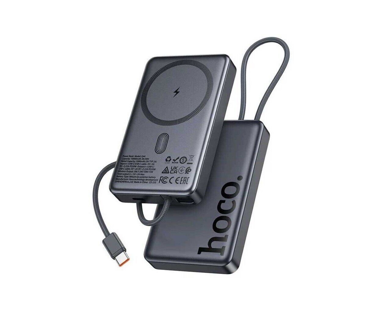 Опис Батарея універсальна HOCO 10000 mAh Origen Dual PD/20W Magnetic with cable Type-C Metal Gray (Q44 / 714983)
