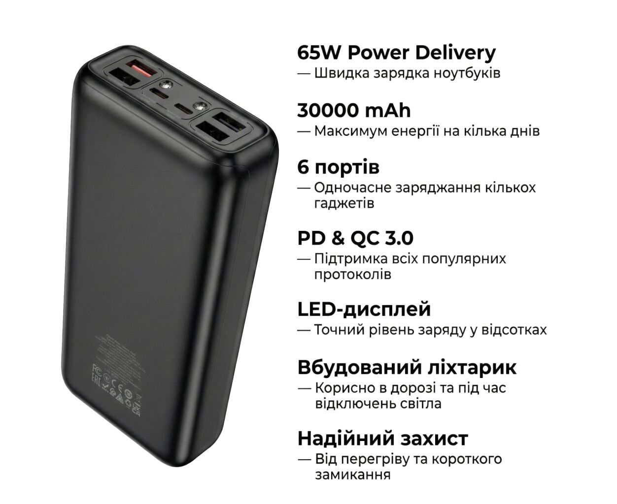 Power Bank Hoco DB81 Apollo PD65W 30000 mAh Black — максимум енергії для ваших пристроїв