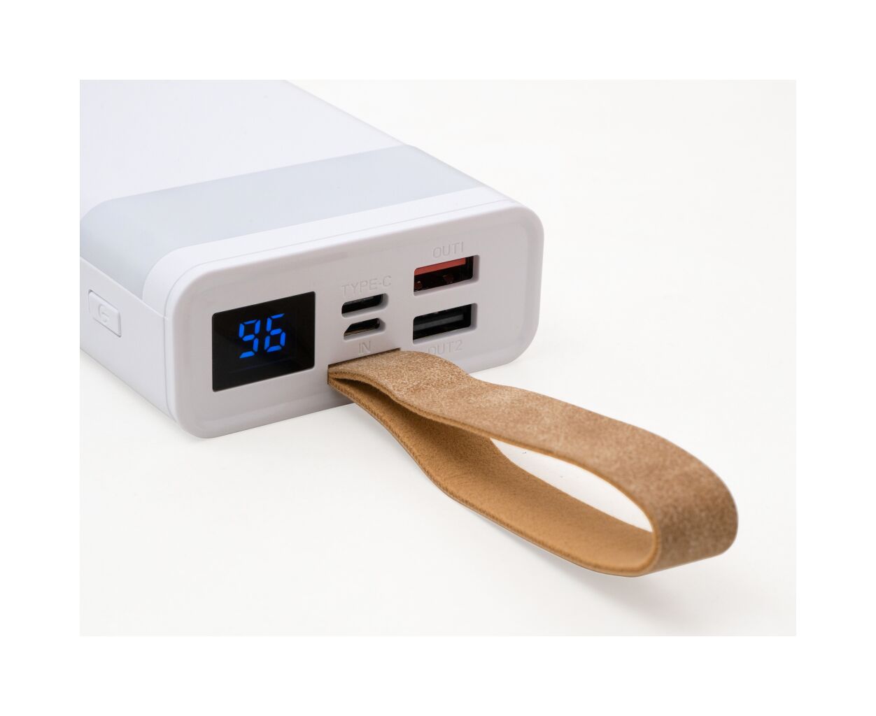 Ємність - 20000 mAh, Джерело заряду батареї - USB, інтерфейси підключення (вихід) - USB Type-C, 2 х USB, вихідний струм - 2 A, розмір - 148 х 68 х 27 мм, матеріал корпусу - PC-пластик, ABS пластик, Колір - білий
